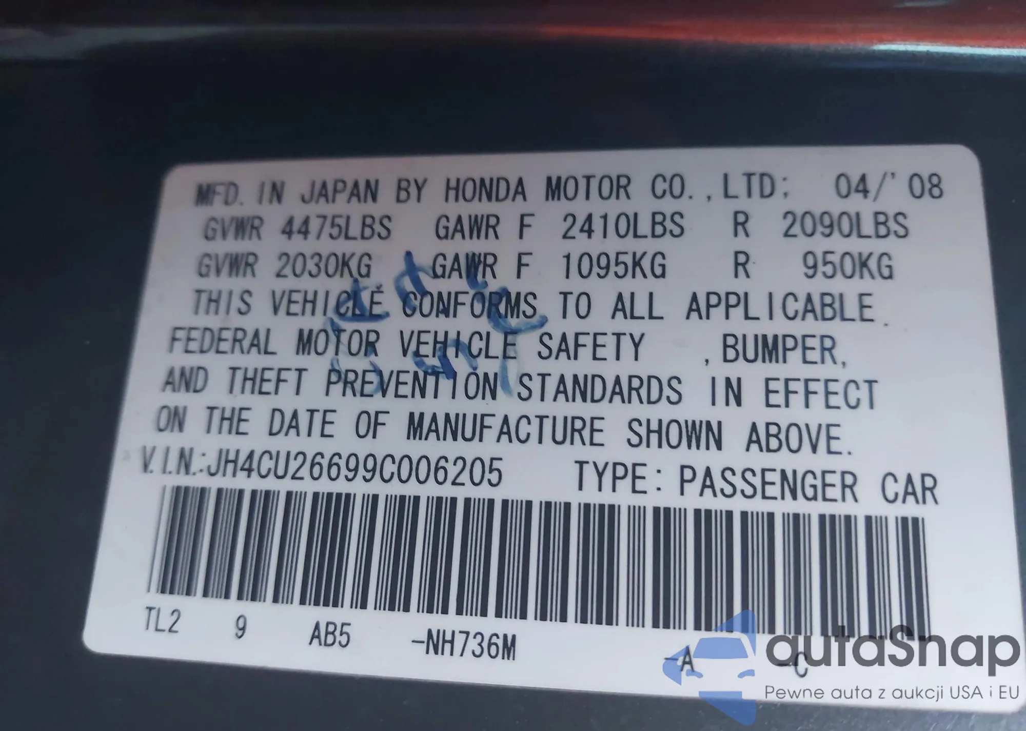 VIN: JH4CU26699C006205