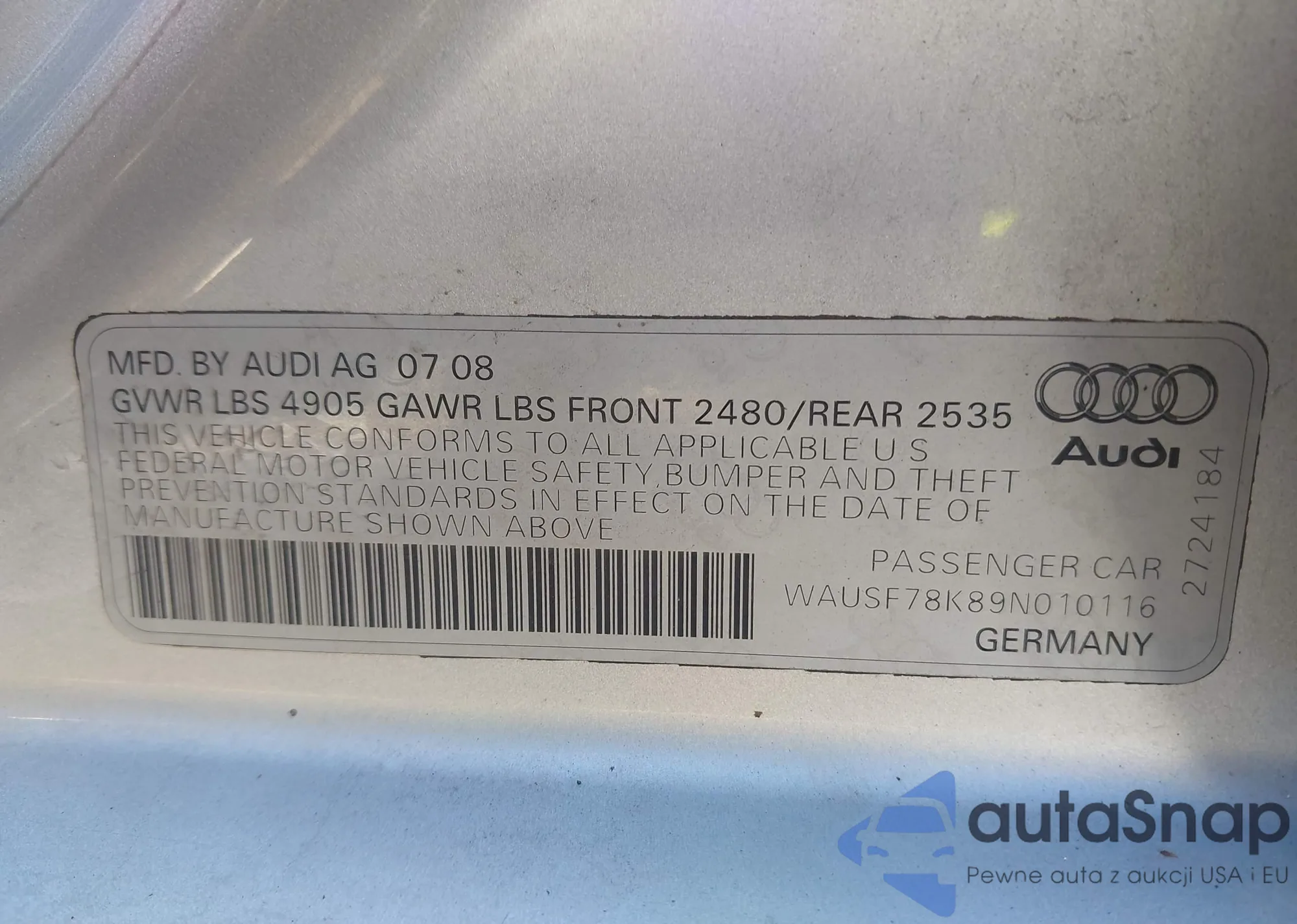 VIN: WAUSF78K89N010116