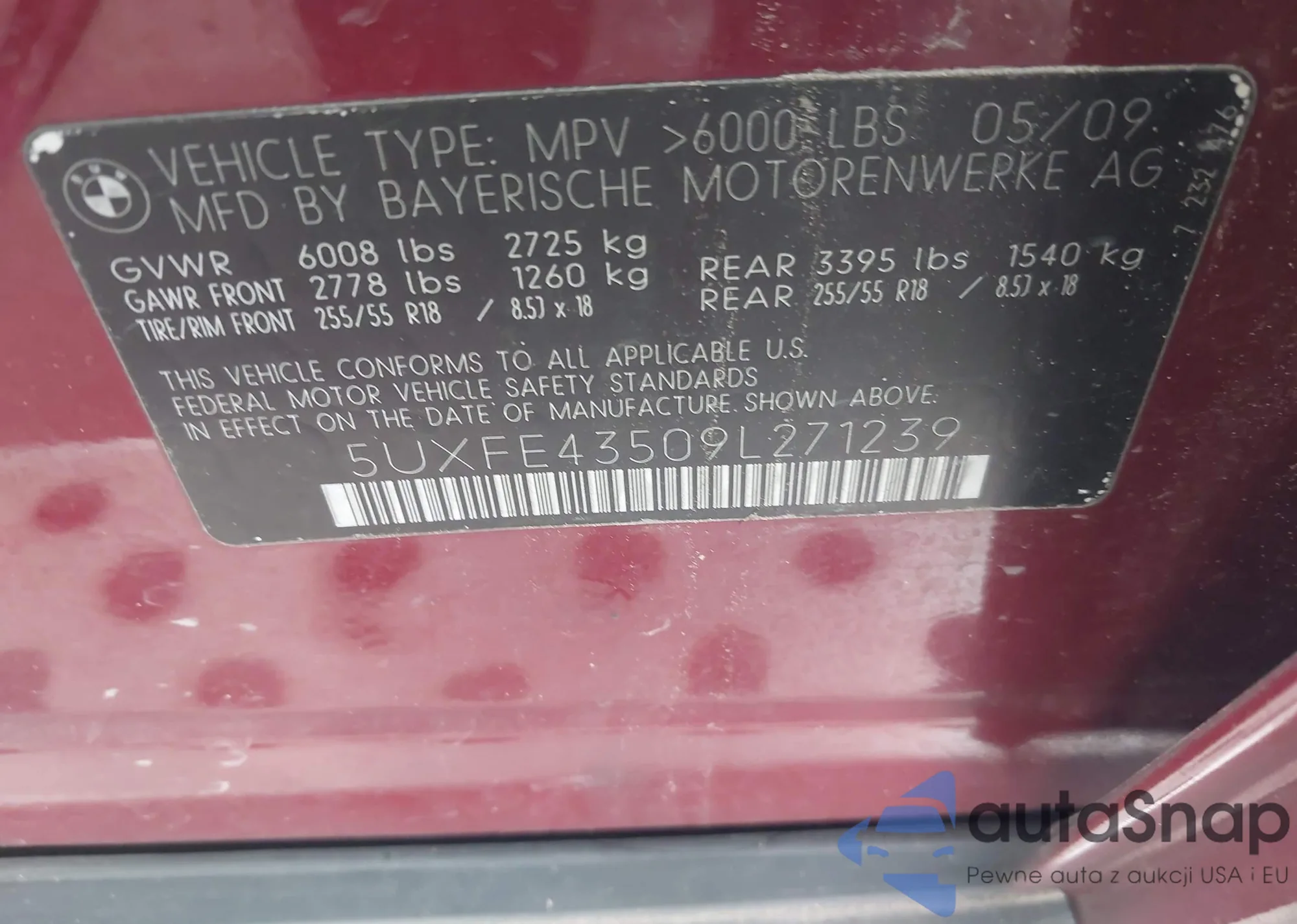VIN: 5UXFE43509L271239