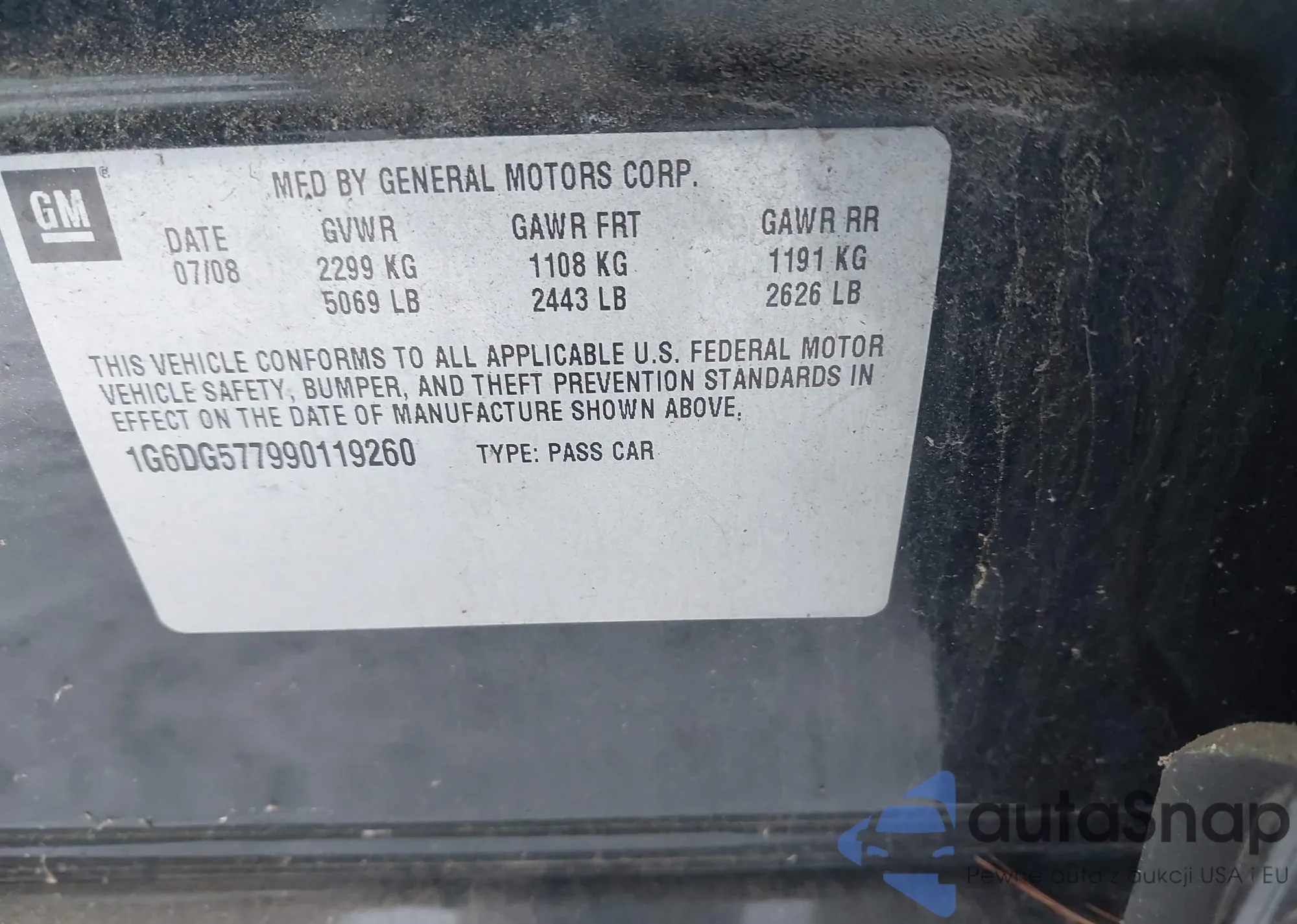 • VIN: 1G6DG577990119260