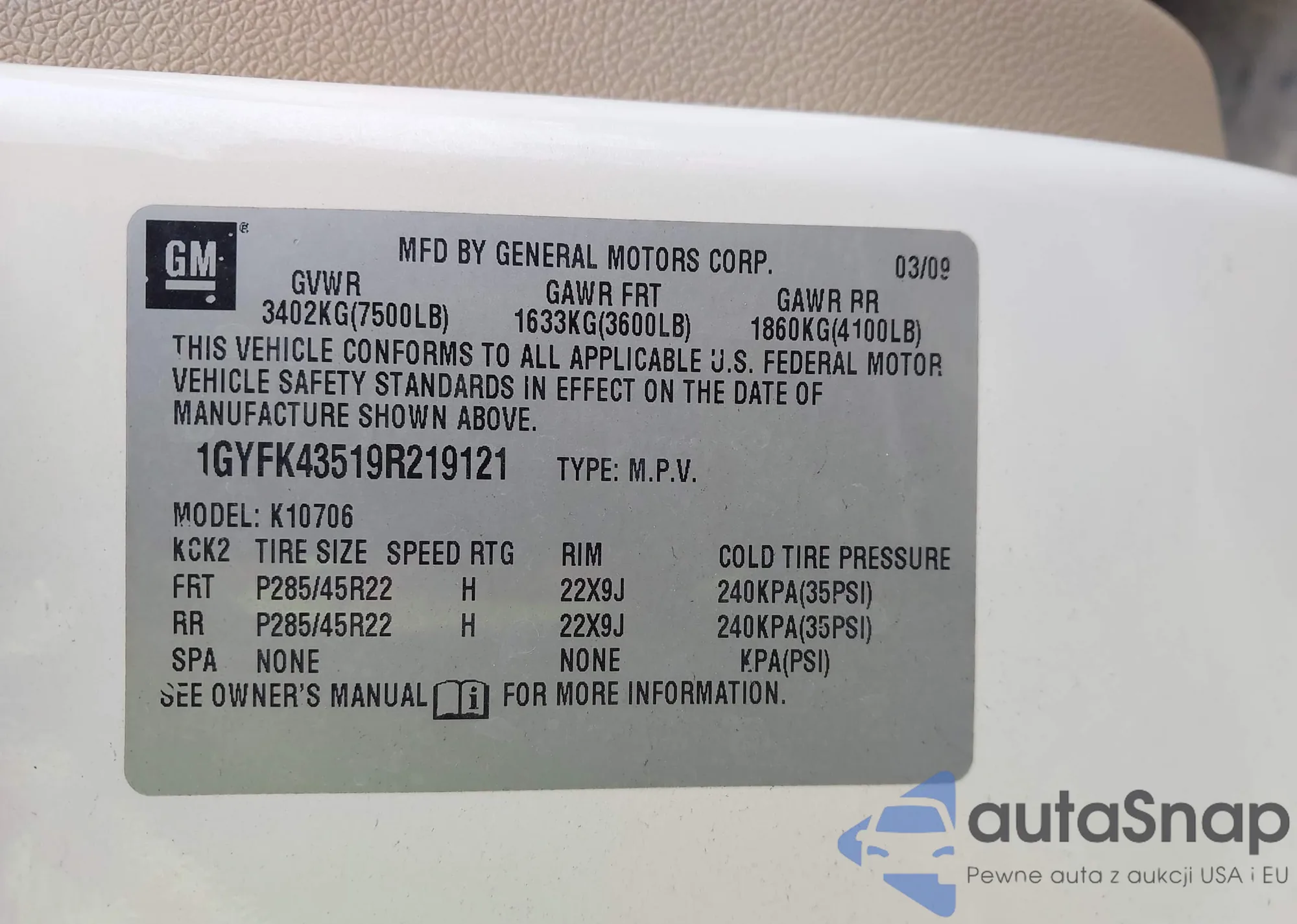 VIN: 1GYFK43519R219121