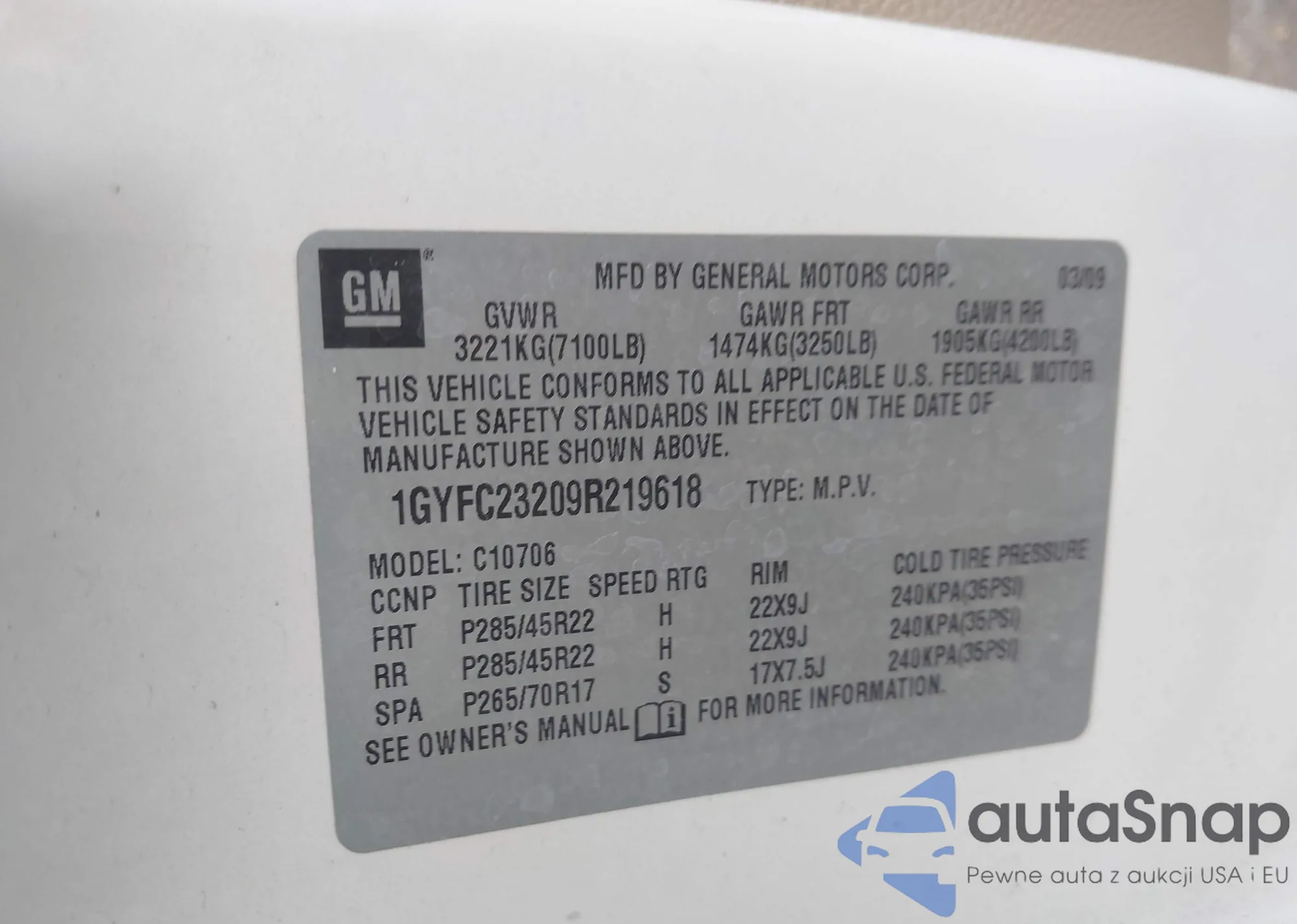 • VIN: 1GYFC23209R219618