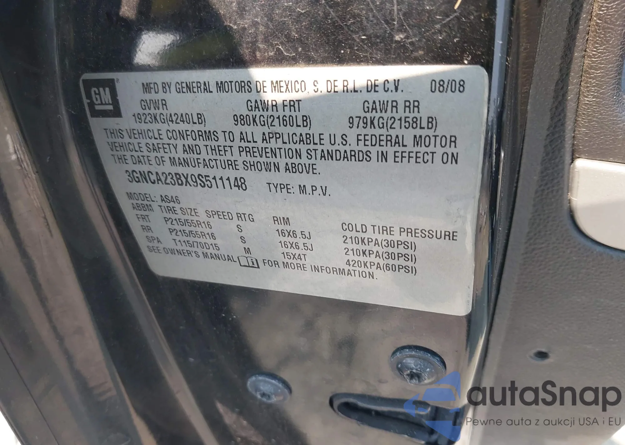 VIN: 3GNCA23BX9S511148