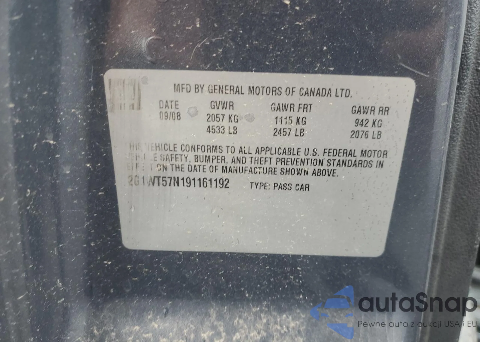 VIN: 2G1WT57N191161192