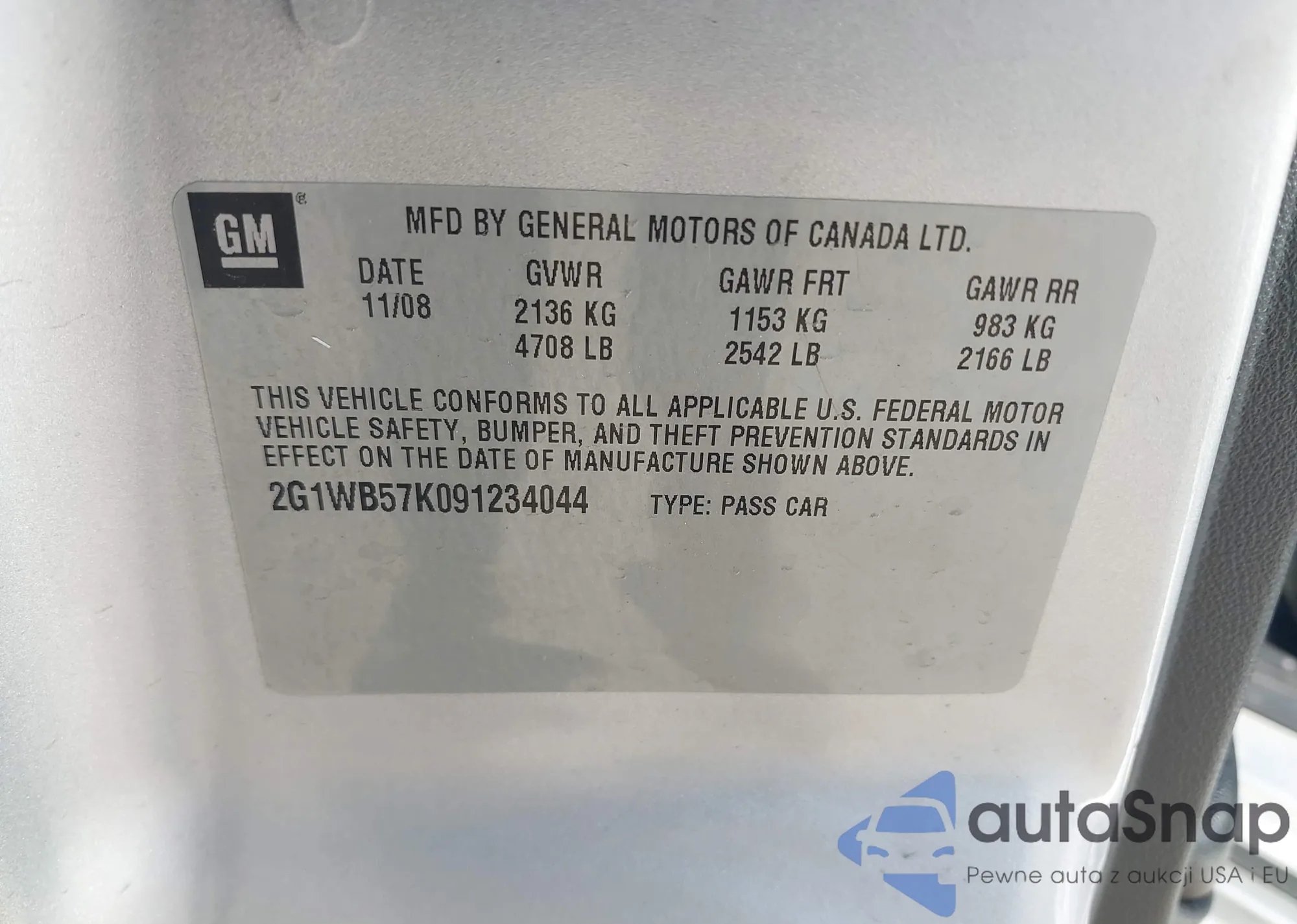 VIN: 2G1WB57K091234044