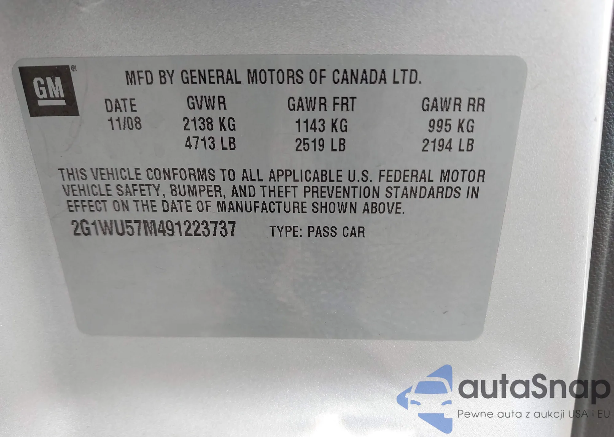 VIN: 2G1WU57M491223737