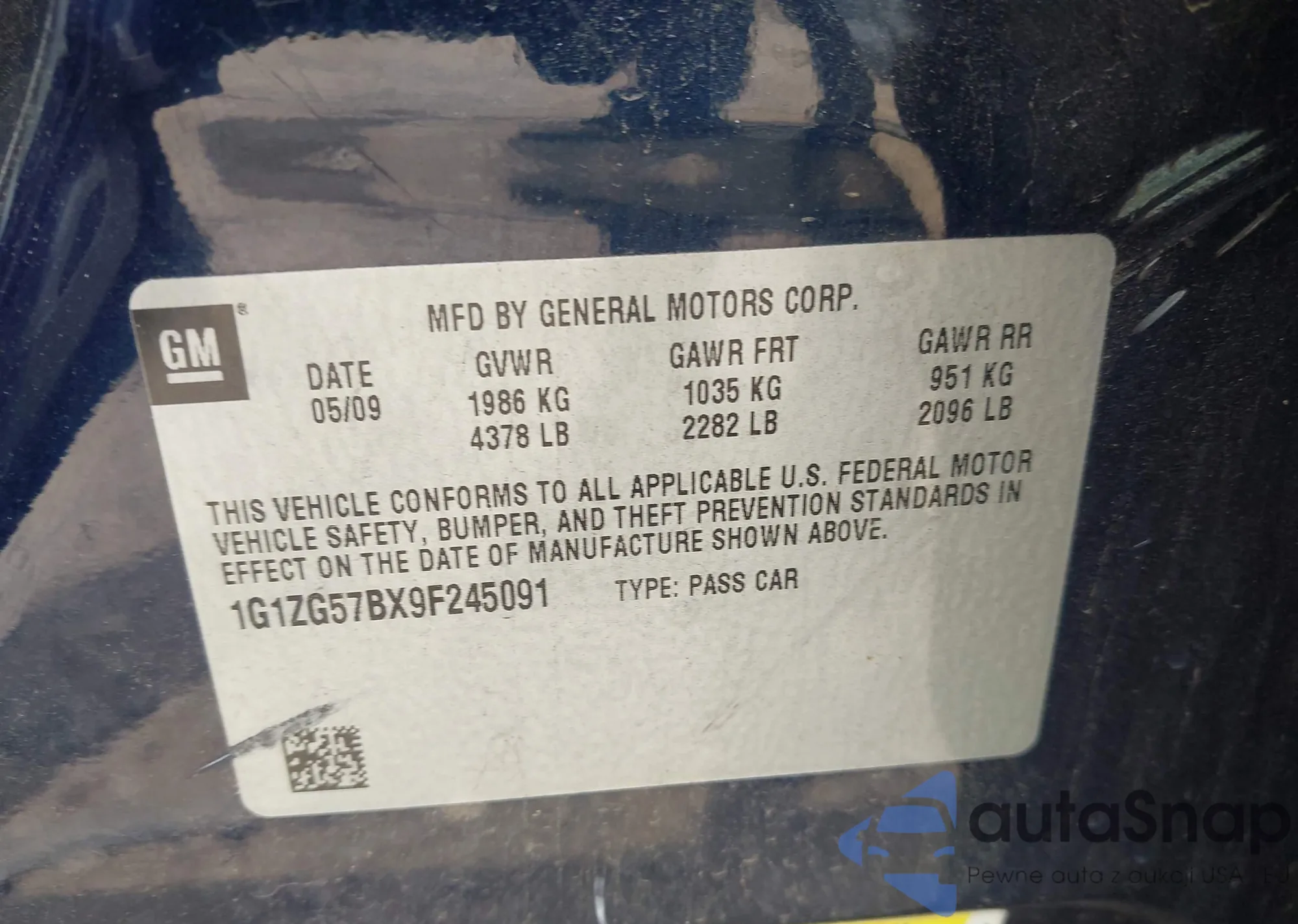 VIN: 1G1ZG57BX9F245091