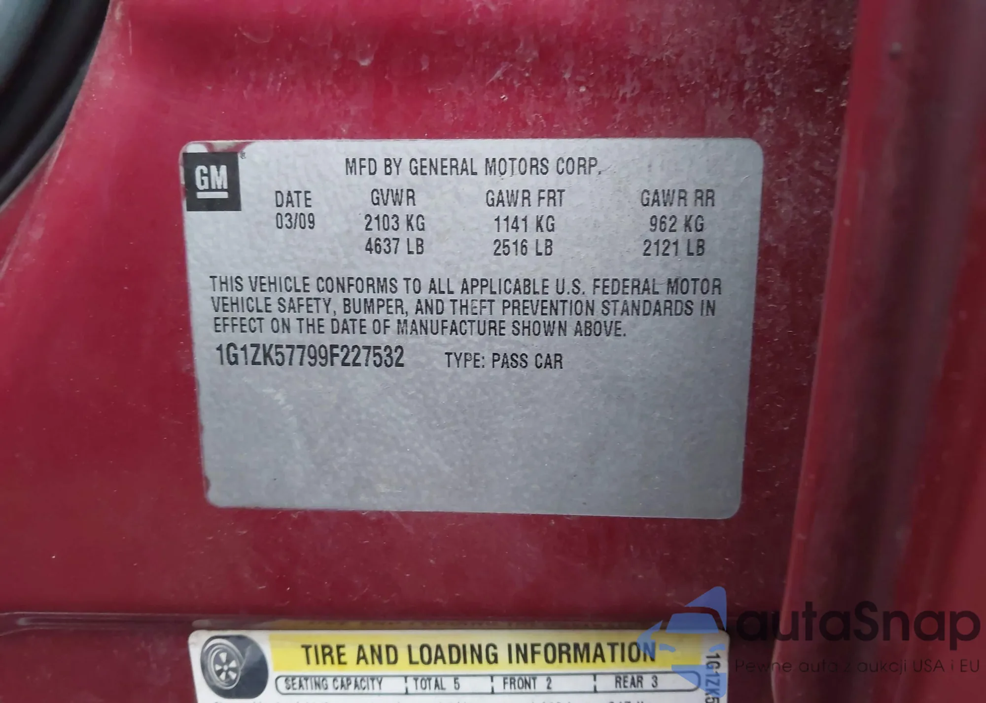 • VIN: 1G1ZK57799F227532