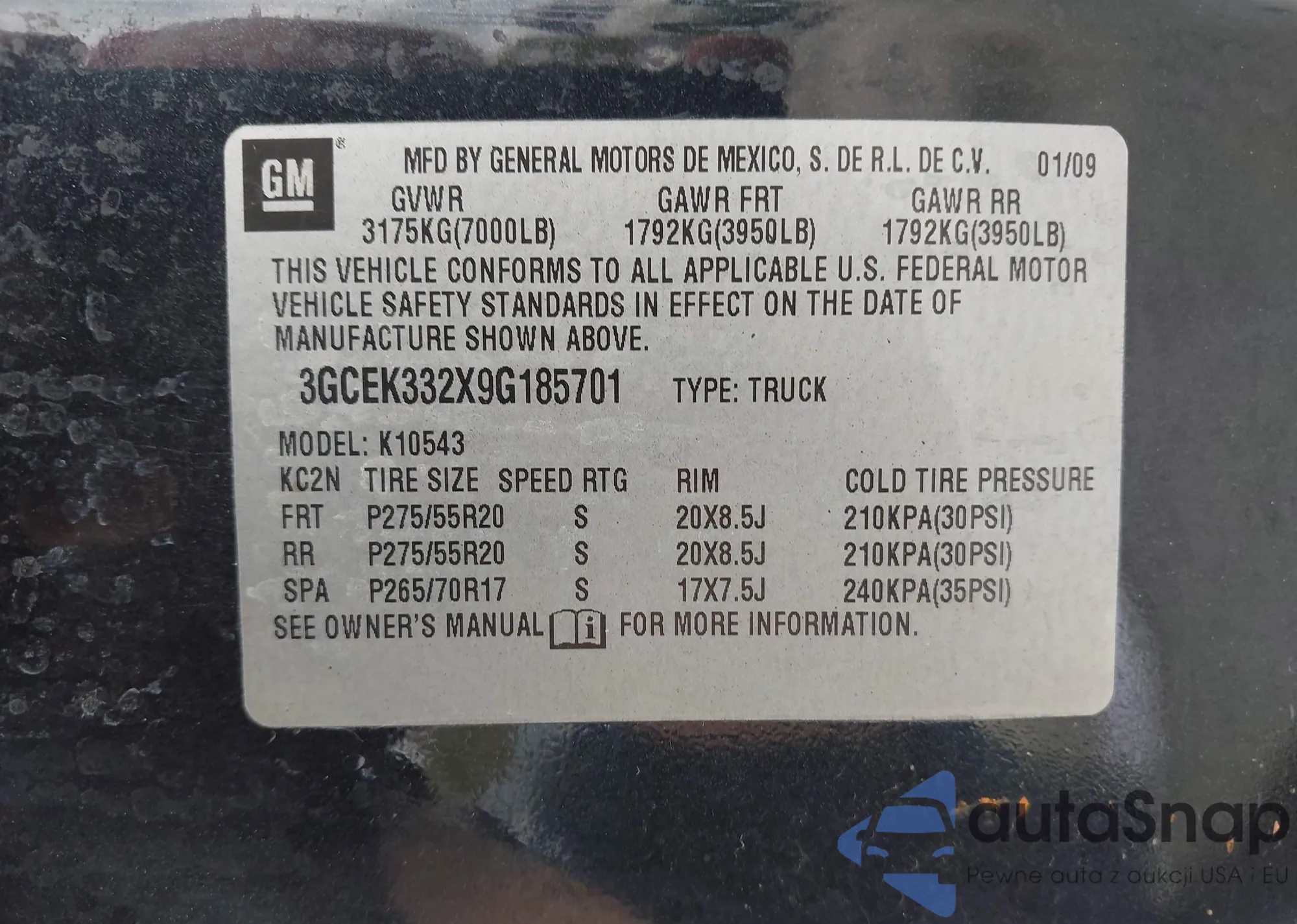 VIN: 3GCEK332X9G185701