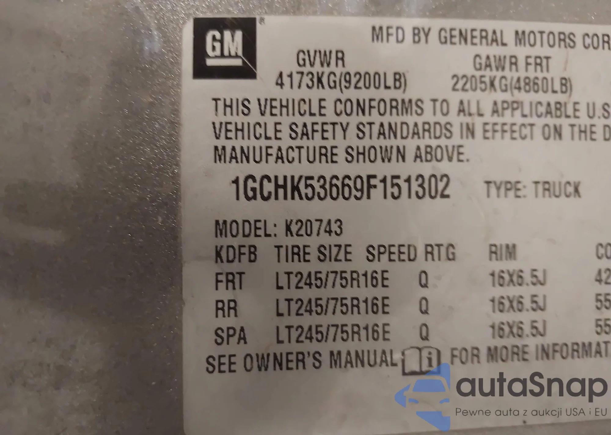 VIN: 1GCHK53669F151302