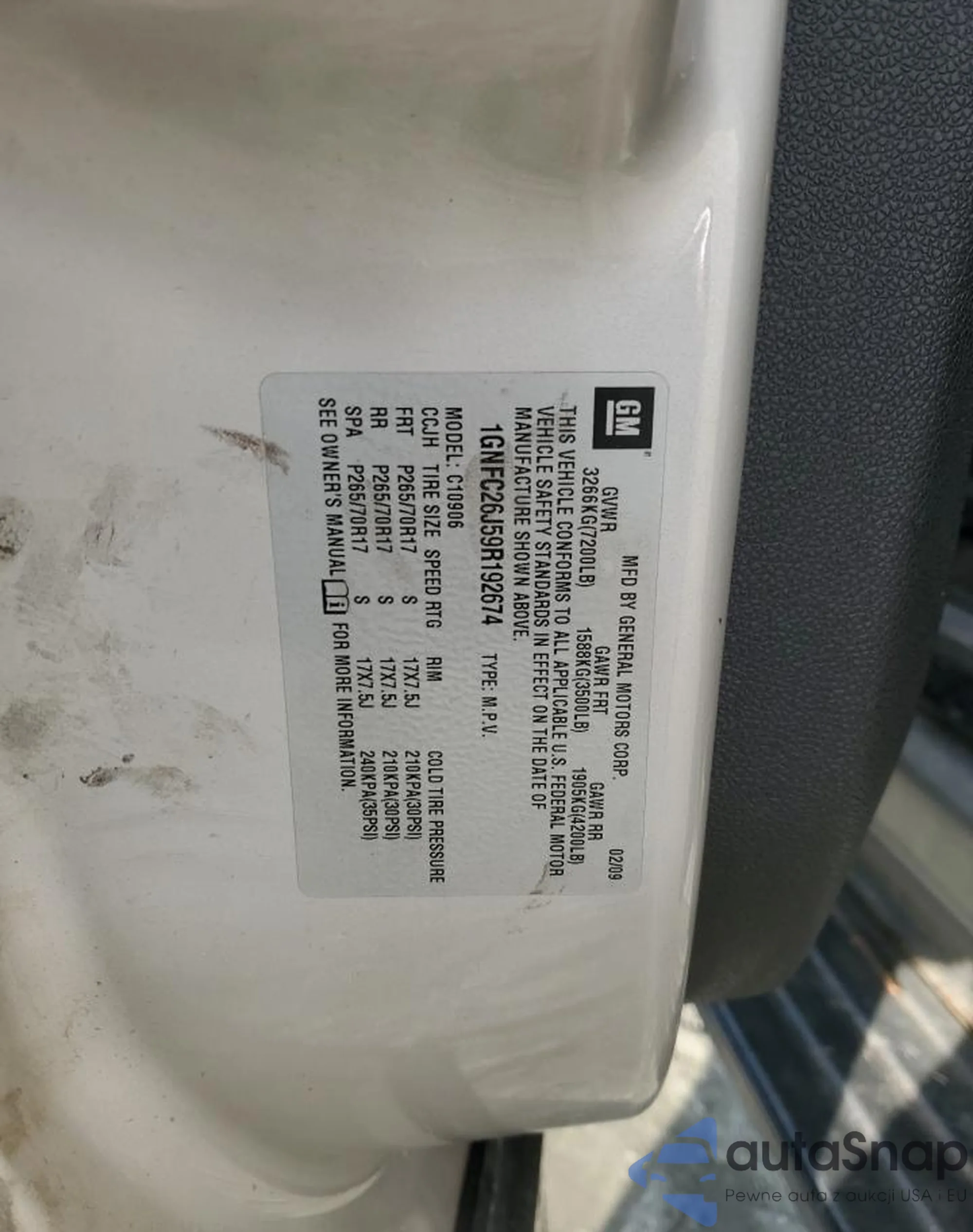 VIN: 1GNFC26J59R192674