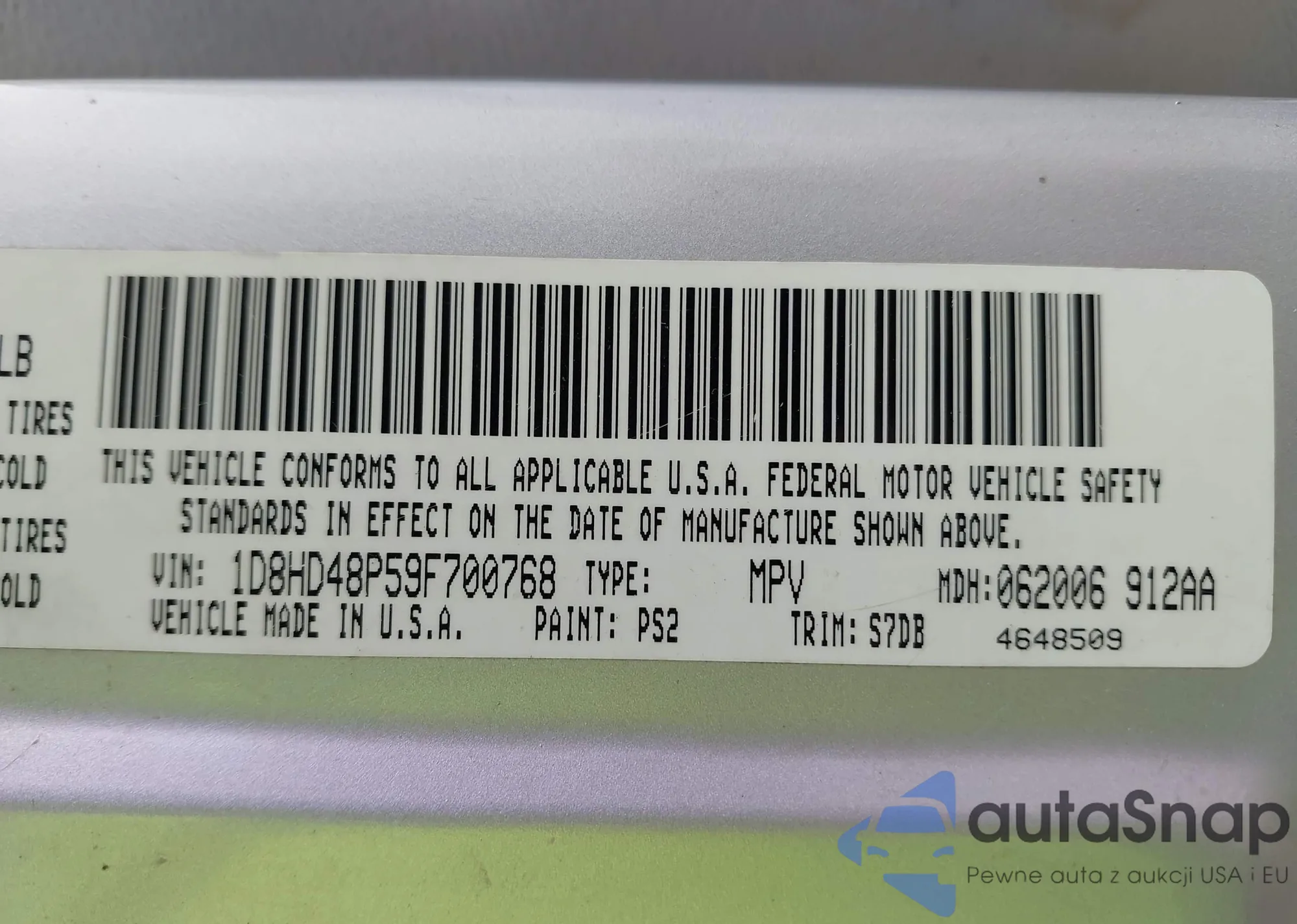• VIN: 1D8HD48P59F700768