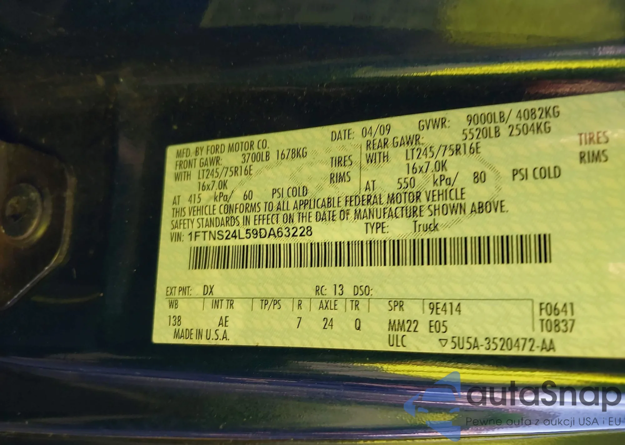 • VIN: 1FTNS24L59DA63228