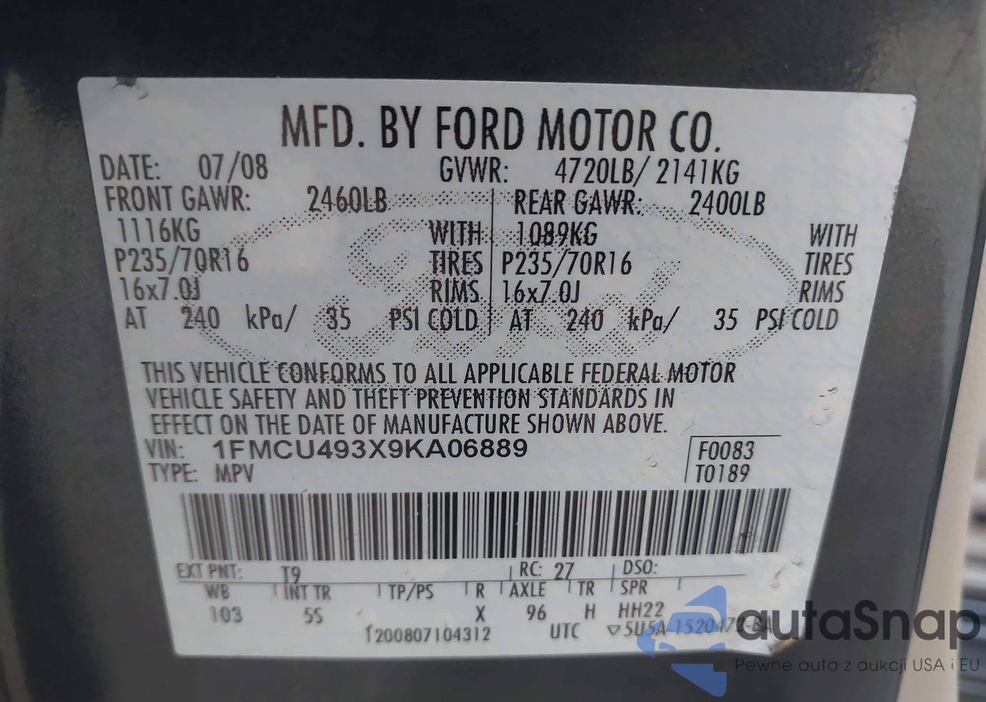 VIN: 1FMCU493X9KA06889