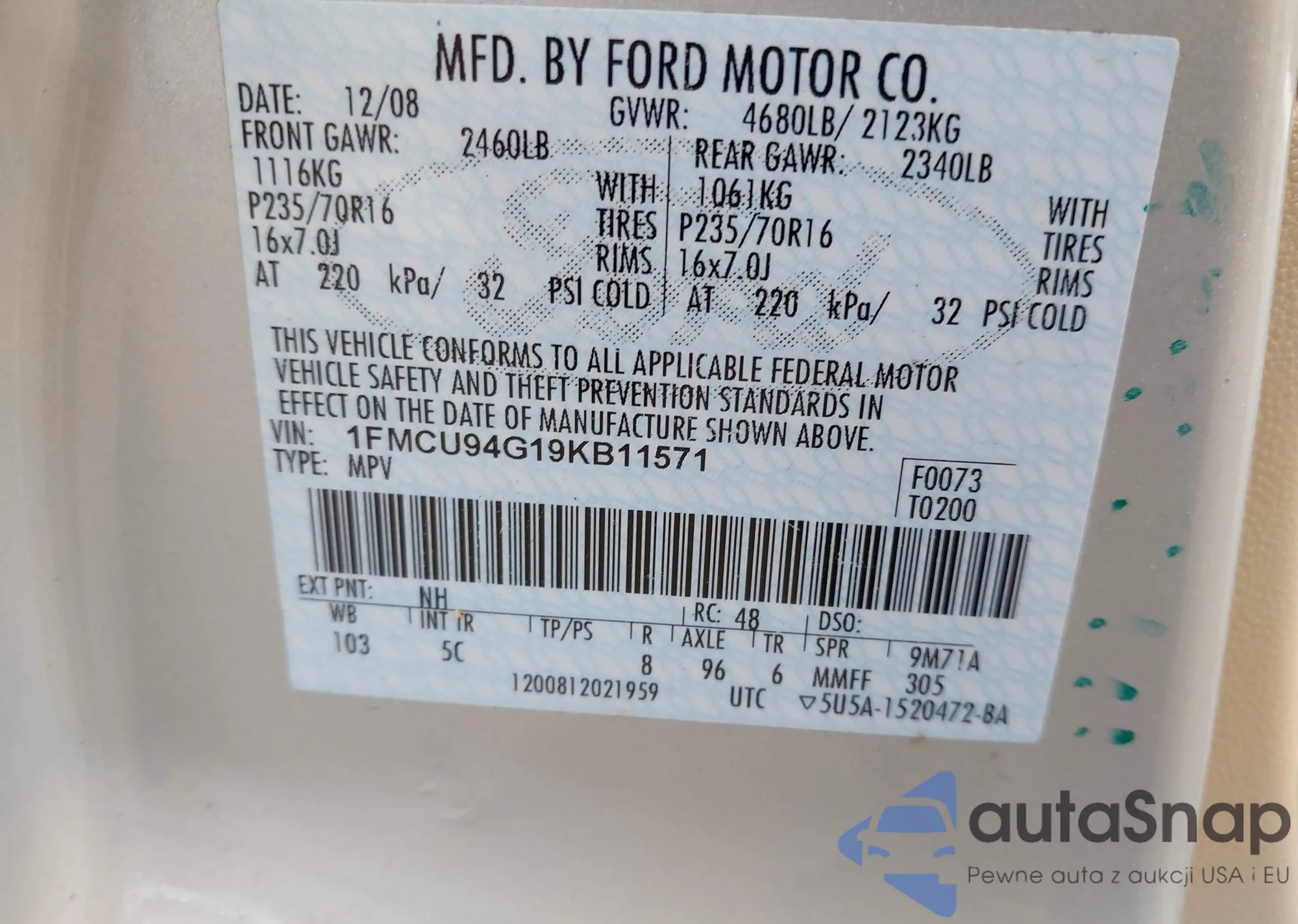 VIN: 1FMCU94G19KB11571