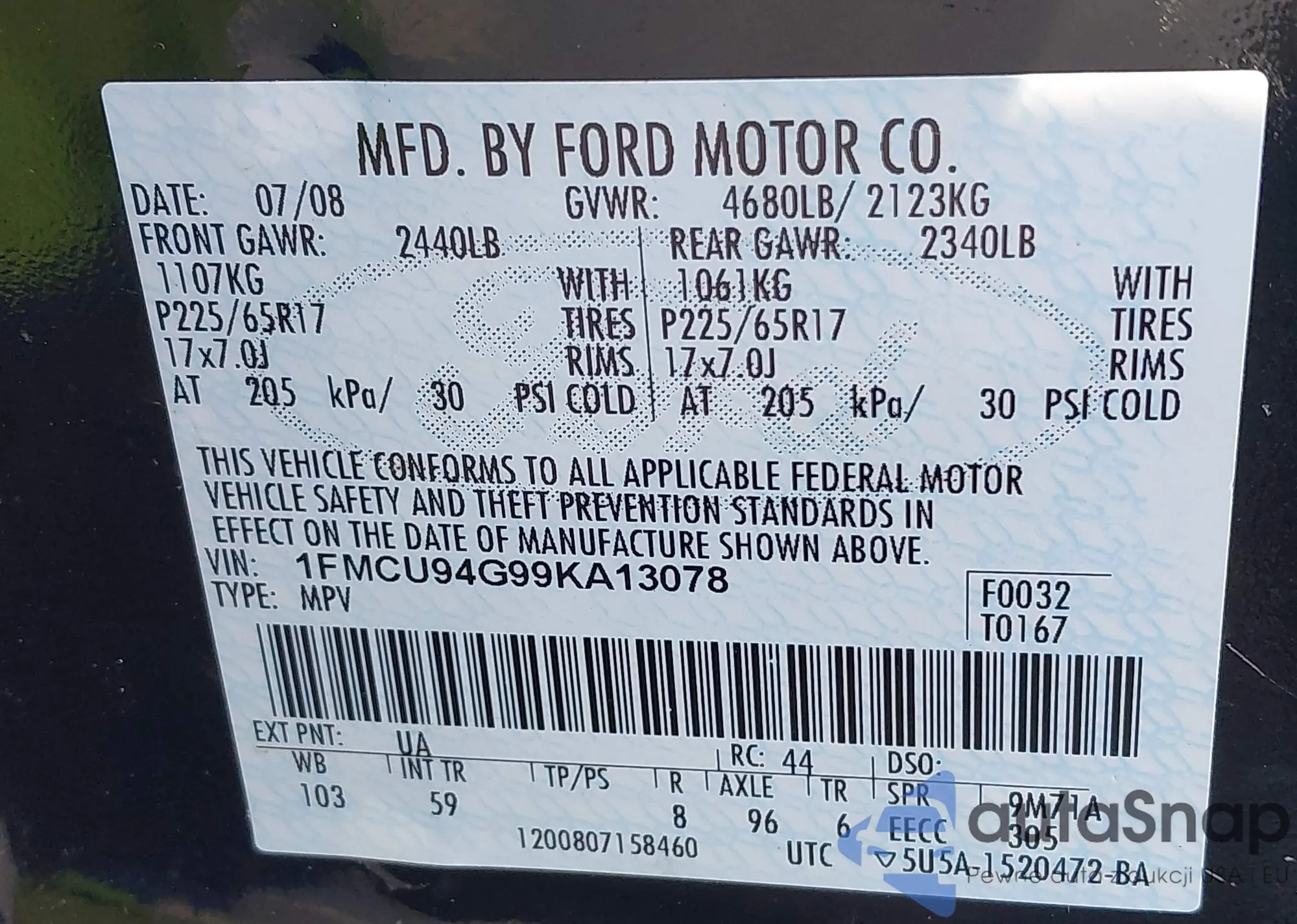VIN: 1FMCU94G99KA13078
