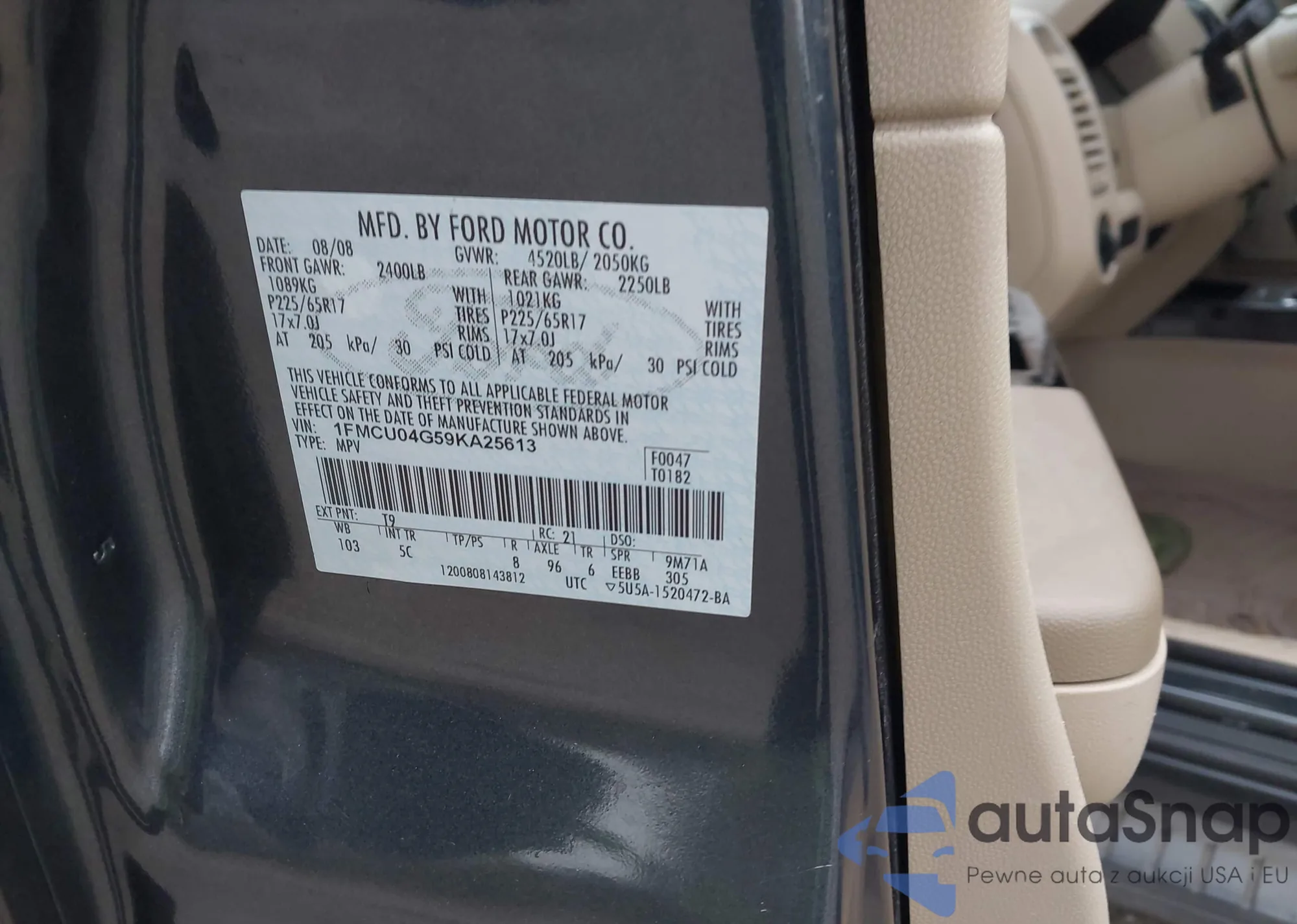 VIN: 1FMCU04G59KA25613
