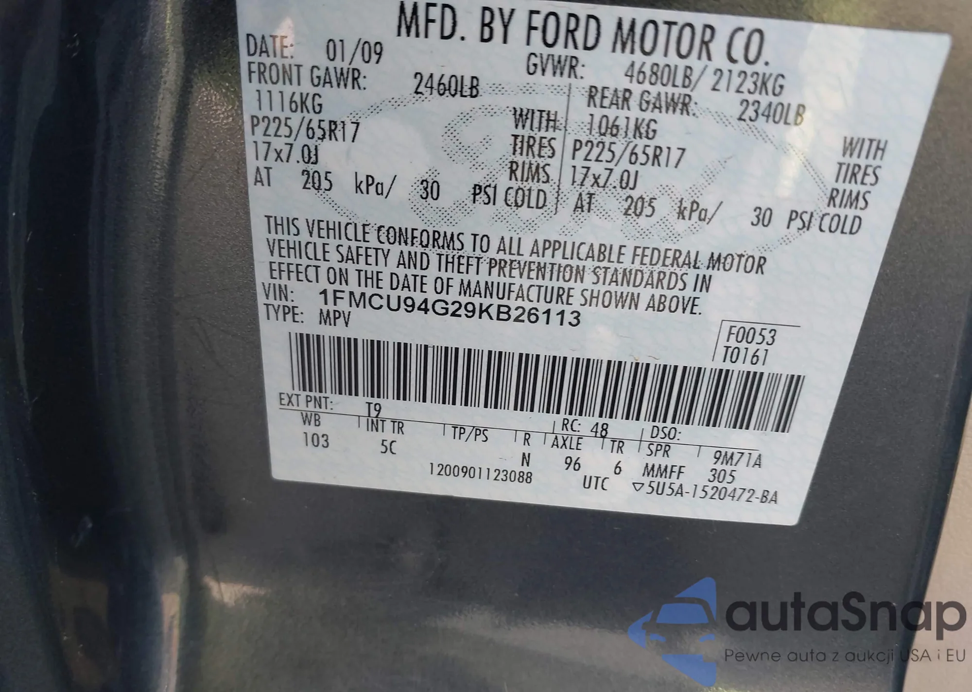 VIN: 1FMCU94G29KB26113