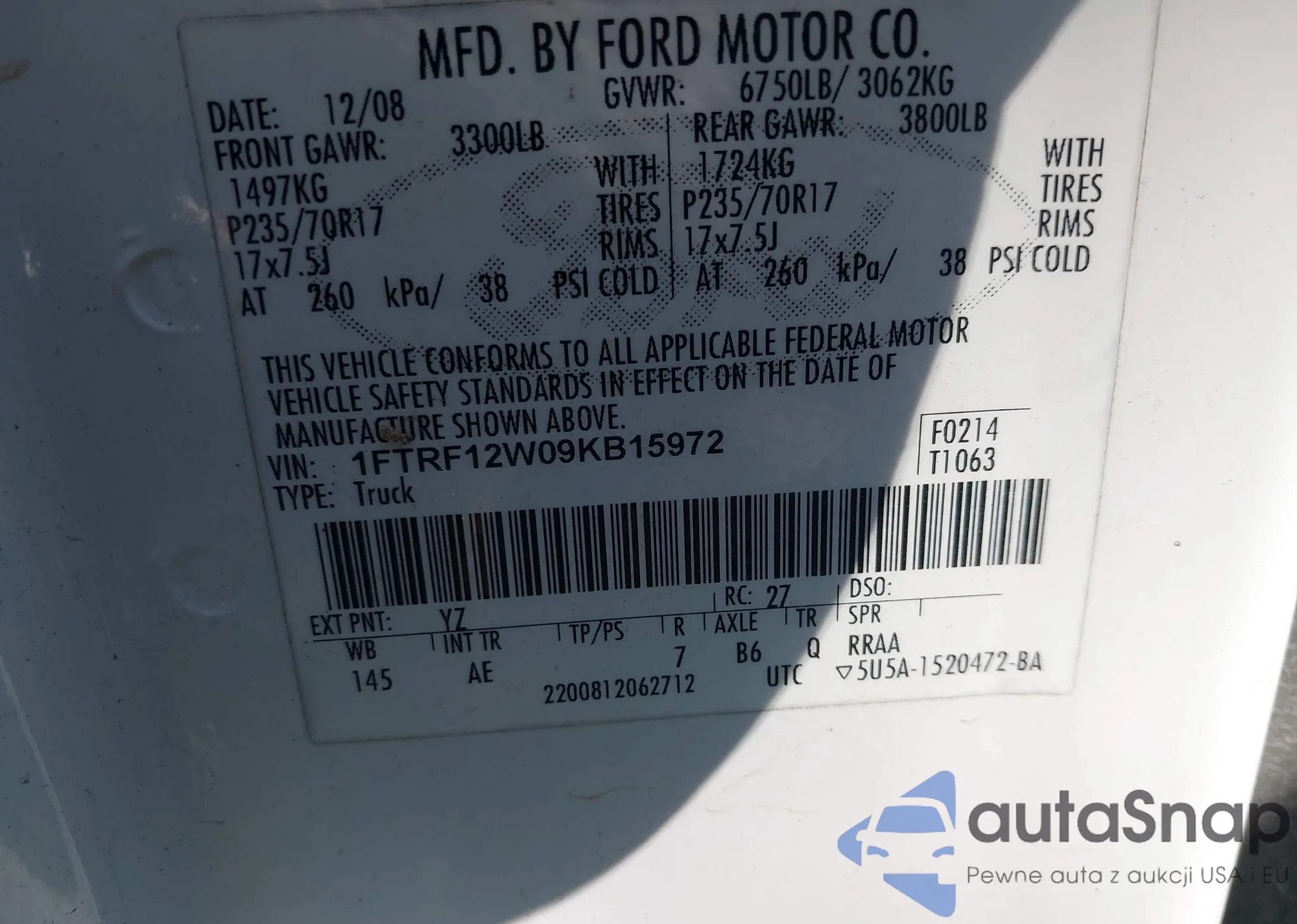 VIN: 1FTRF12W09KB15972