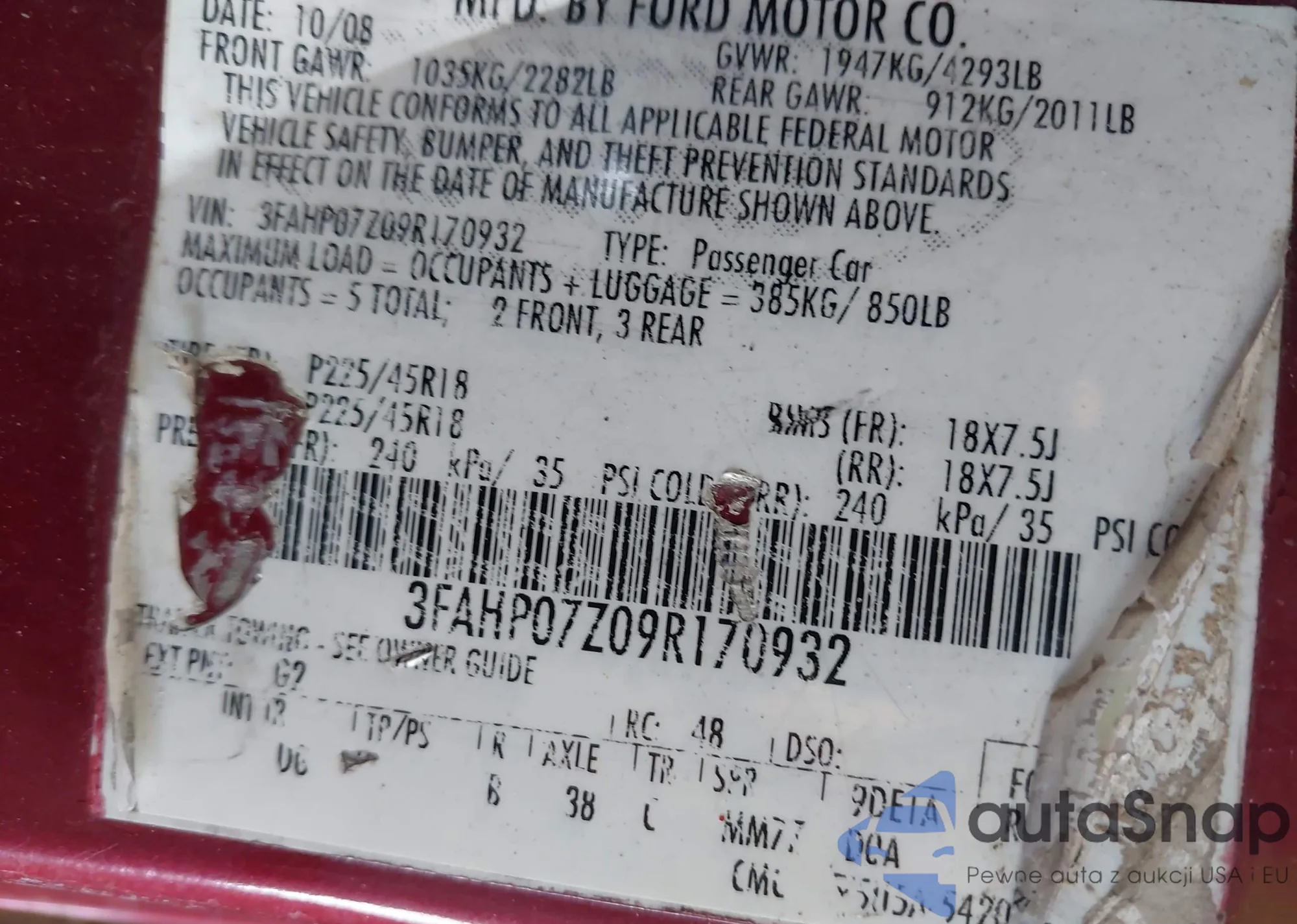 VIN: 3FAHP07Z09R170932