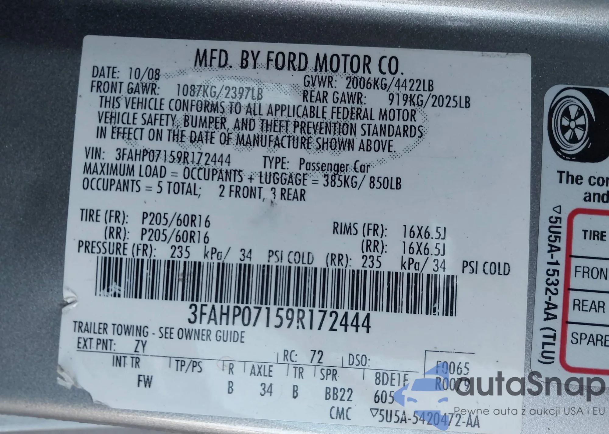 VIN: 3FAHP07159R172444