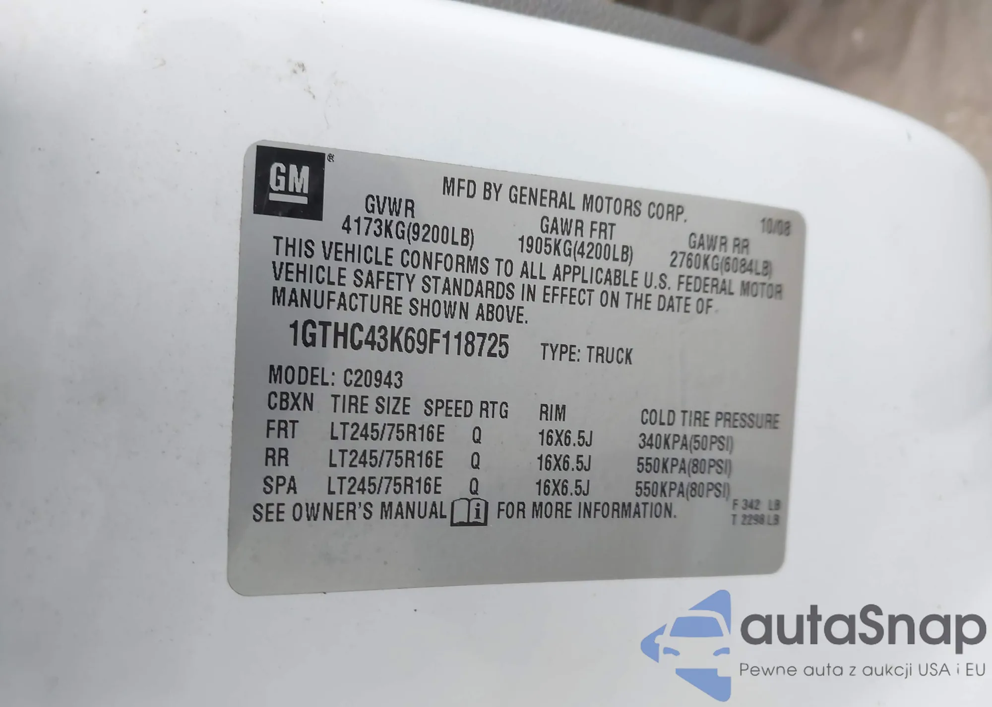VIN: 1GTHC43K69F118725