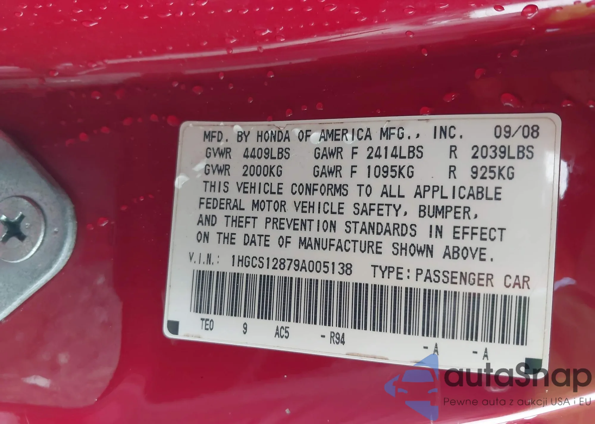 • VIN: 1HGCS12879A005138