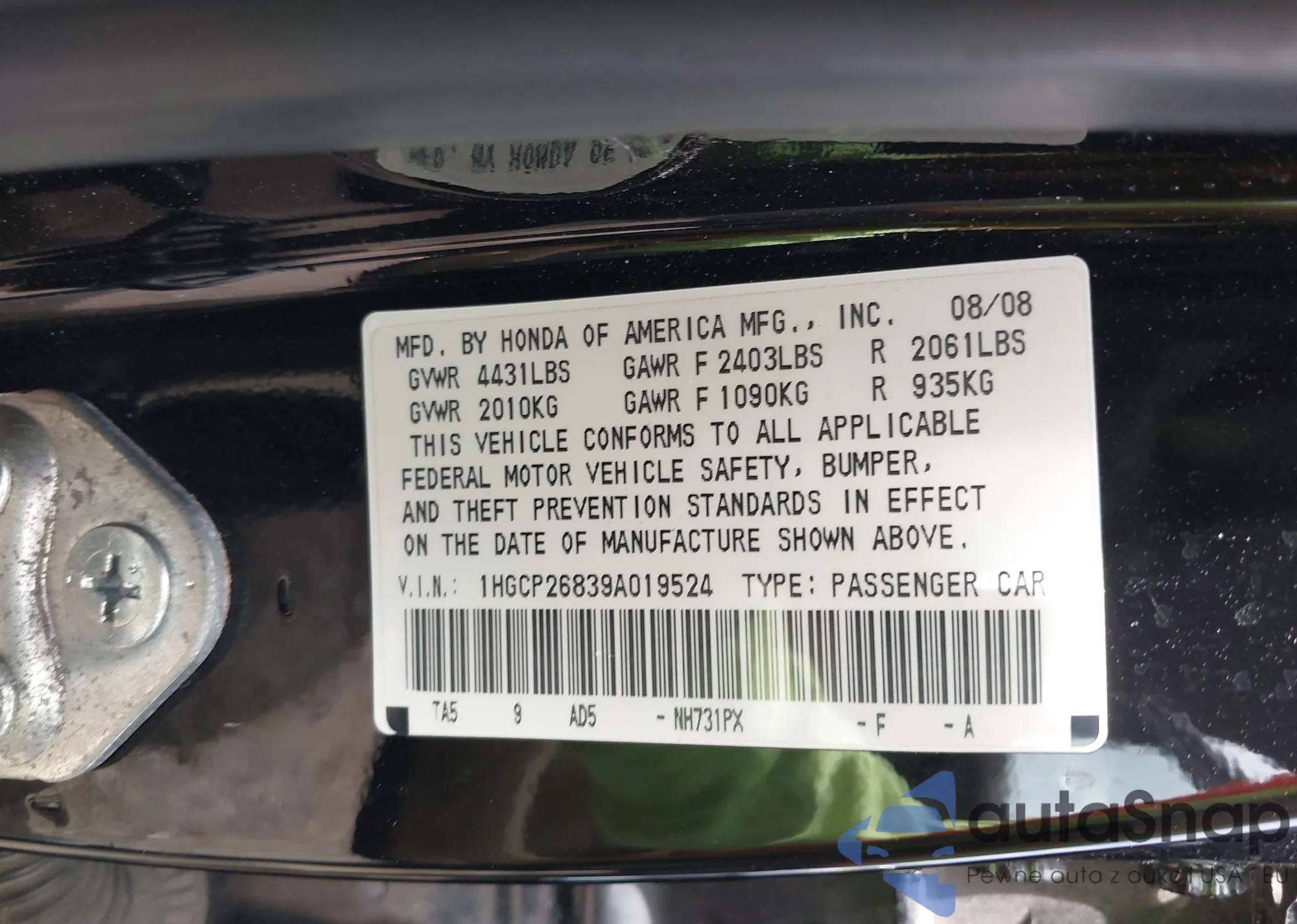 VIN: 1HGCP26839A019524