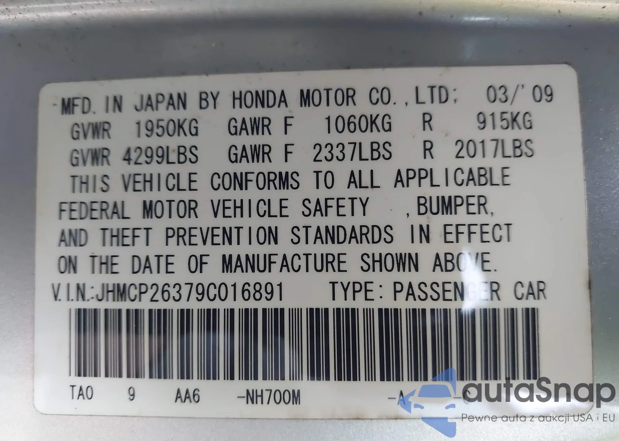 VIN: JHMCP26379C016891