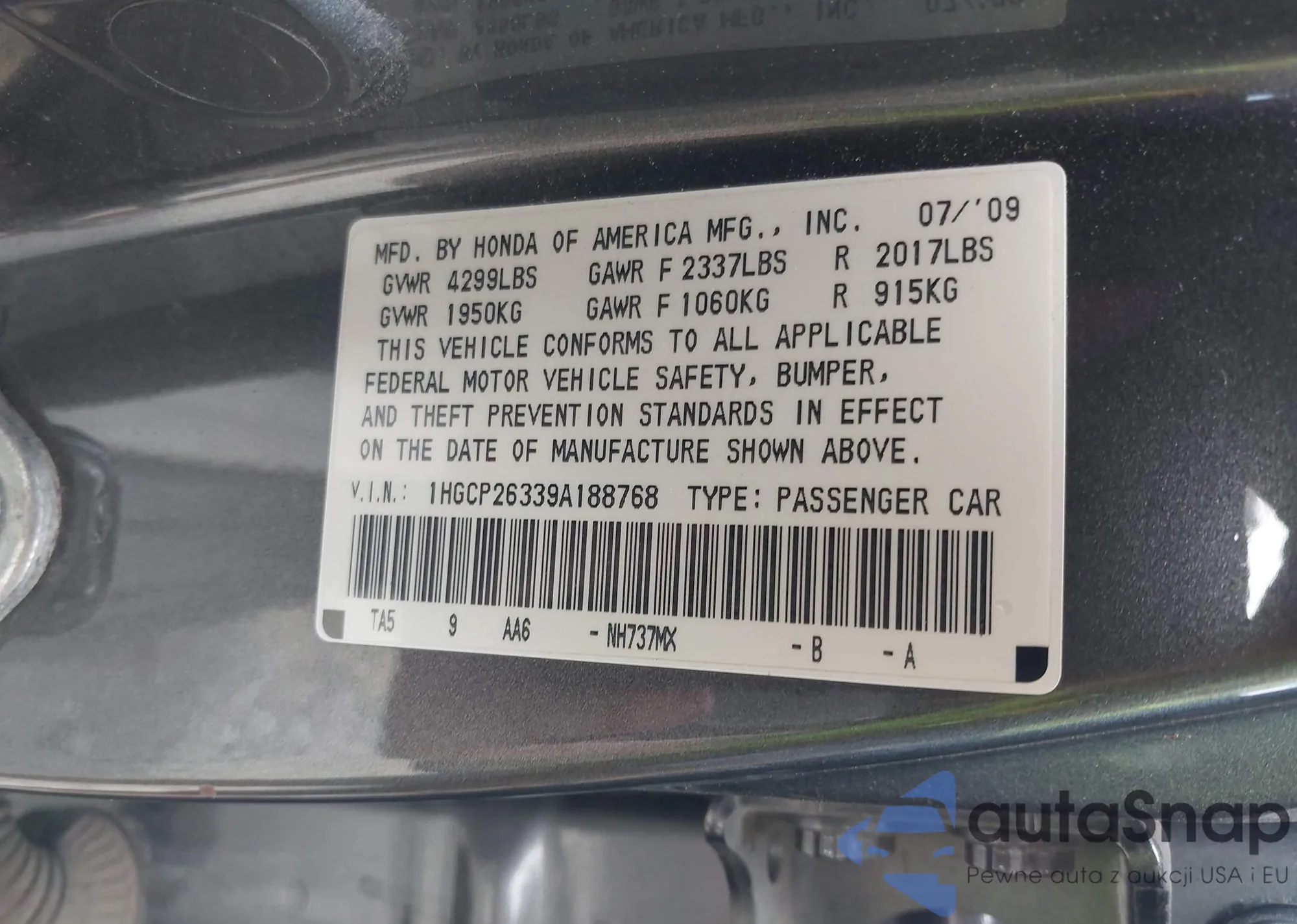 VIN: 1HGCP26339A188768