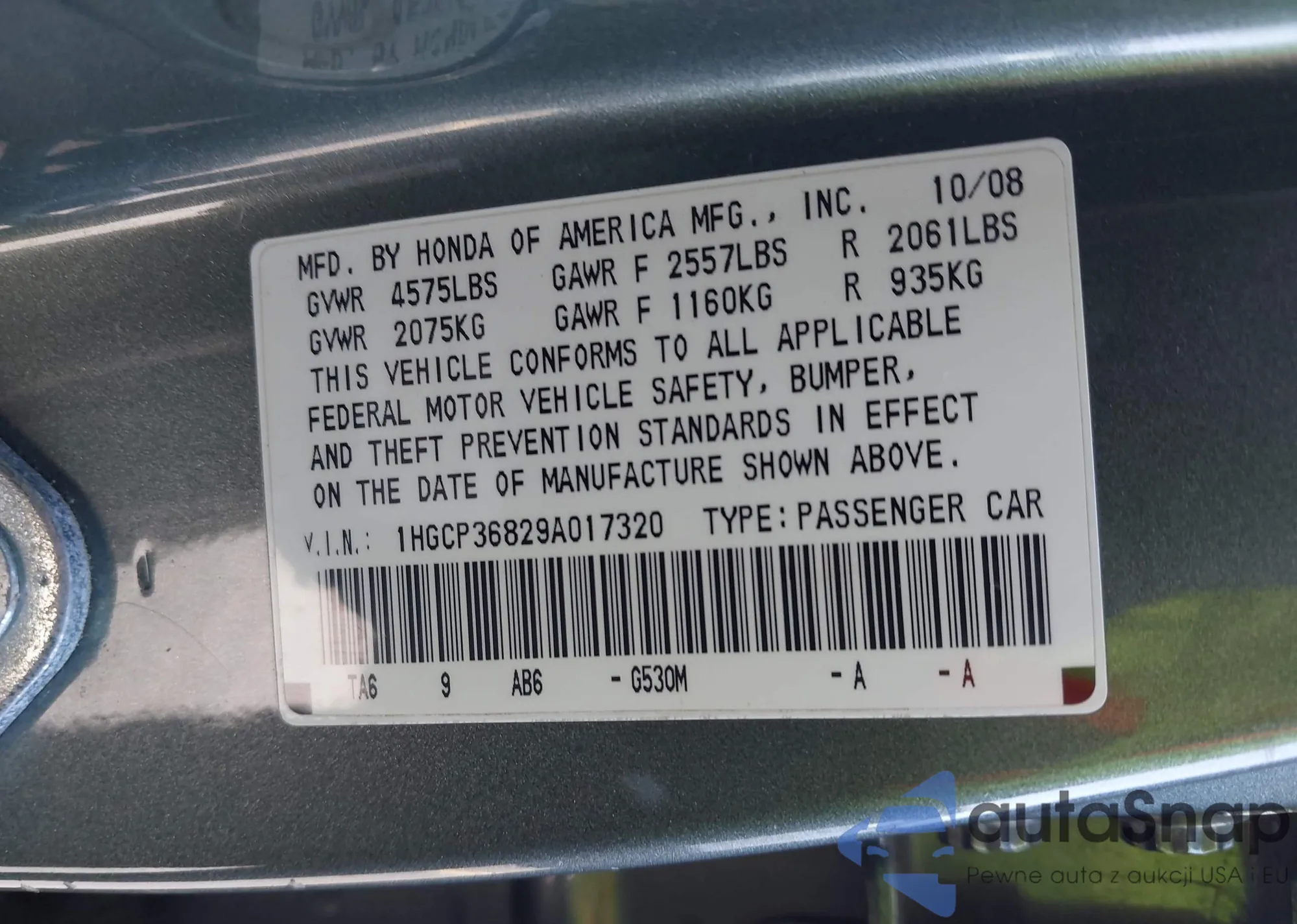 Samochód Honda Accord 2009 (VIN 1HGCP36829A017320) nie był wcześniej licytowany. Dokumenty są czyste, przebieg odpowiada lub jest niższy niż średnia rynku. Sprzedaje go firma ubezpieczeniowa – polecamy zakup. Dostawa do portu zajmie ok. 6–8 tygodni.