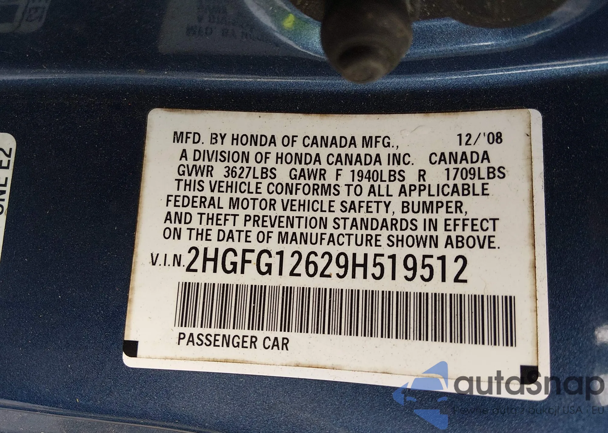 Samochód Honda Civic 2009 (VIN 2HGFG12629H519512) nie był wcześniej licytowany. Dokumenty są czyste, przebieg odpowiada lub jest niższy niż średnia rynku. Sprzedaje go firma ubezpieczeniowa – polecamy zakup. Dostawa do portu zajmie ok. 6–8 tygodni.