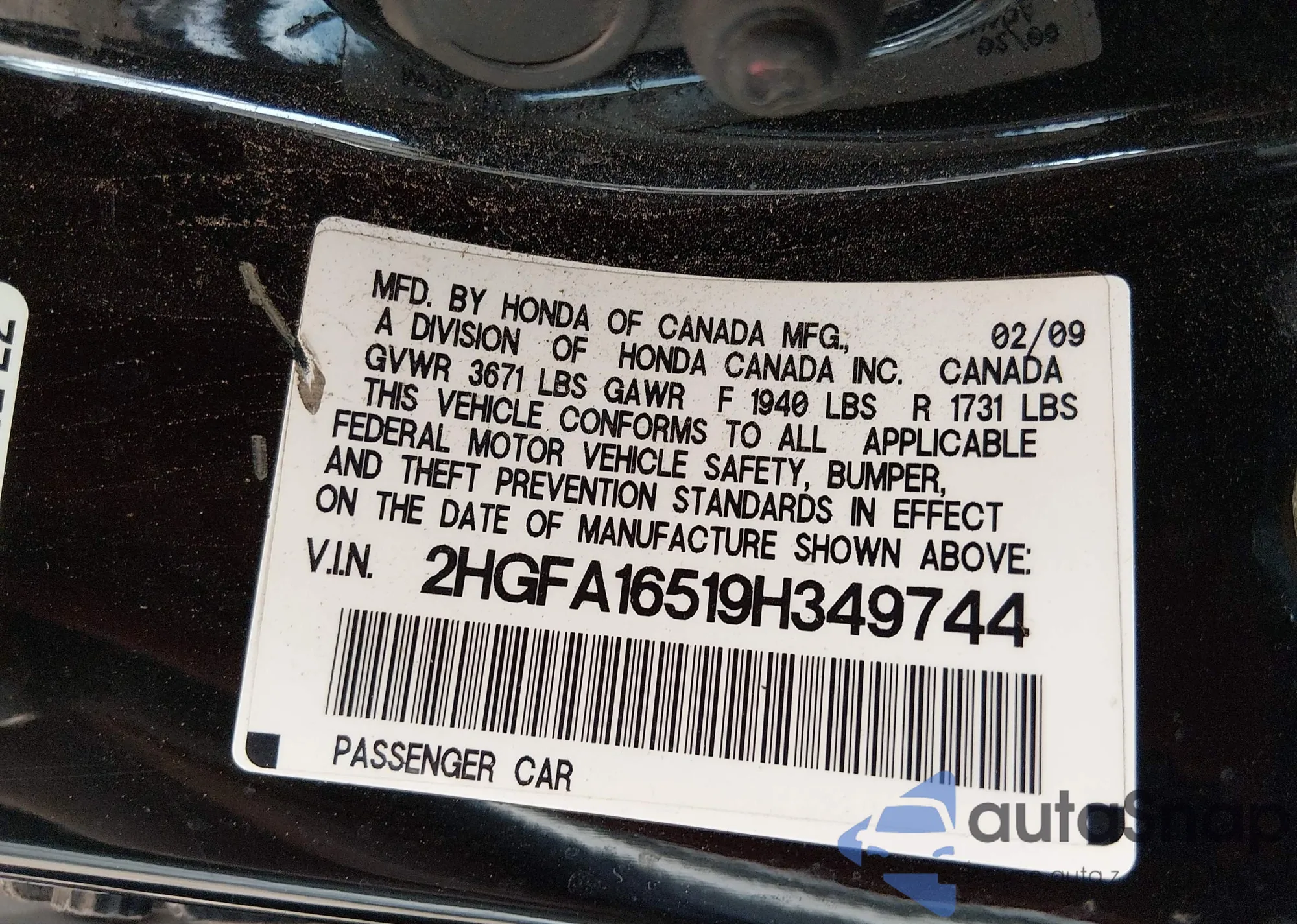 VIN: 2HGFA16519H349744