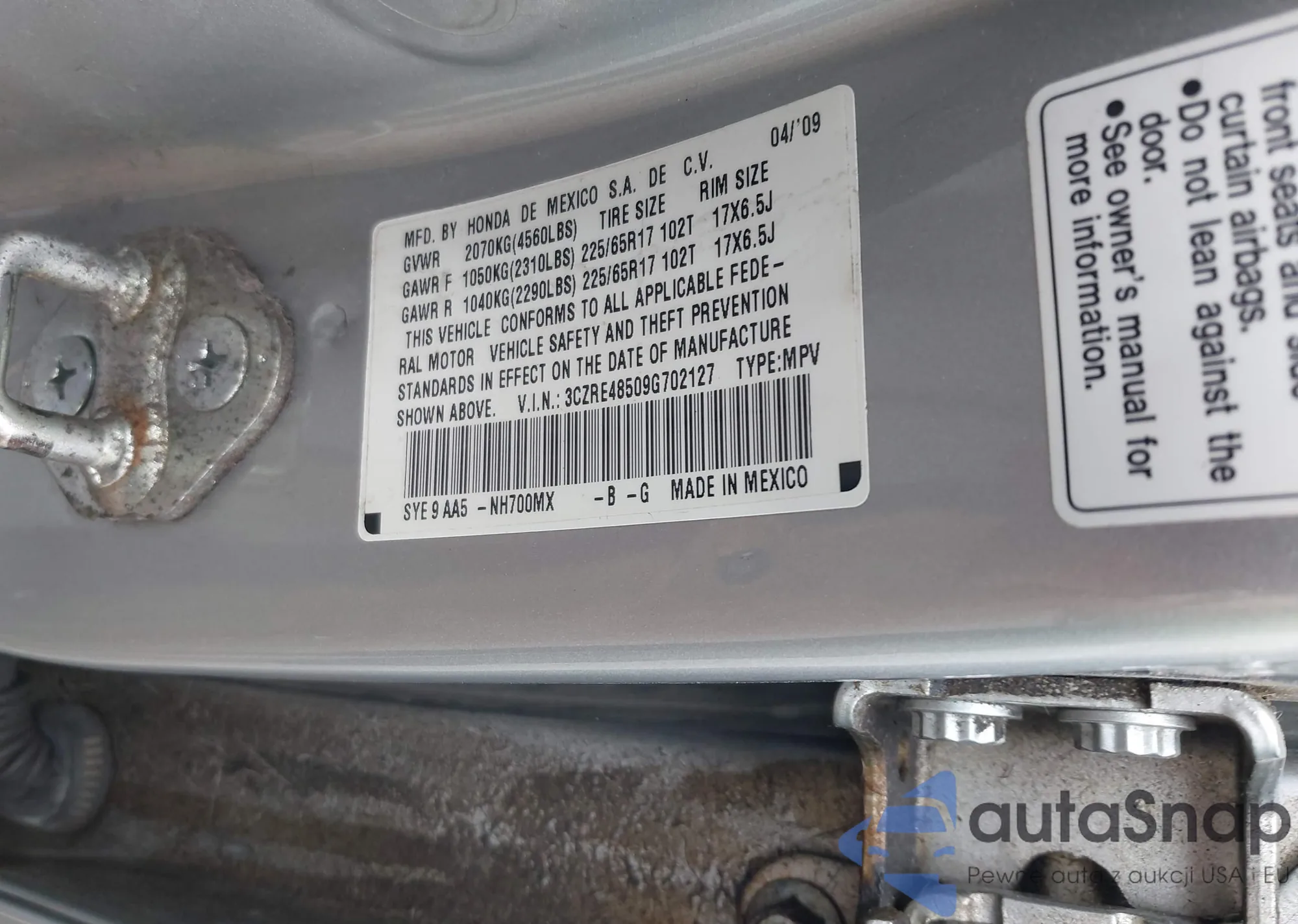 VIN: 3CZRE48509G702127