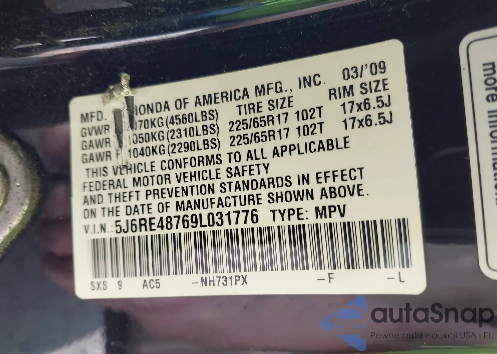 VIN: 5J6RE48769L031776