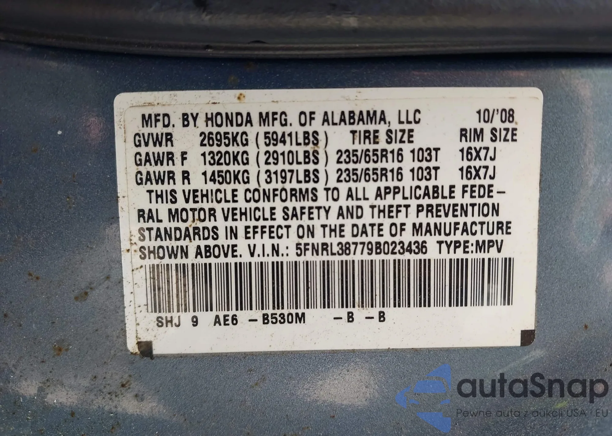 VIN: 5FNRL38779B023436