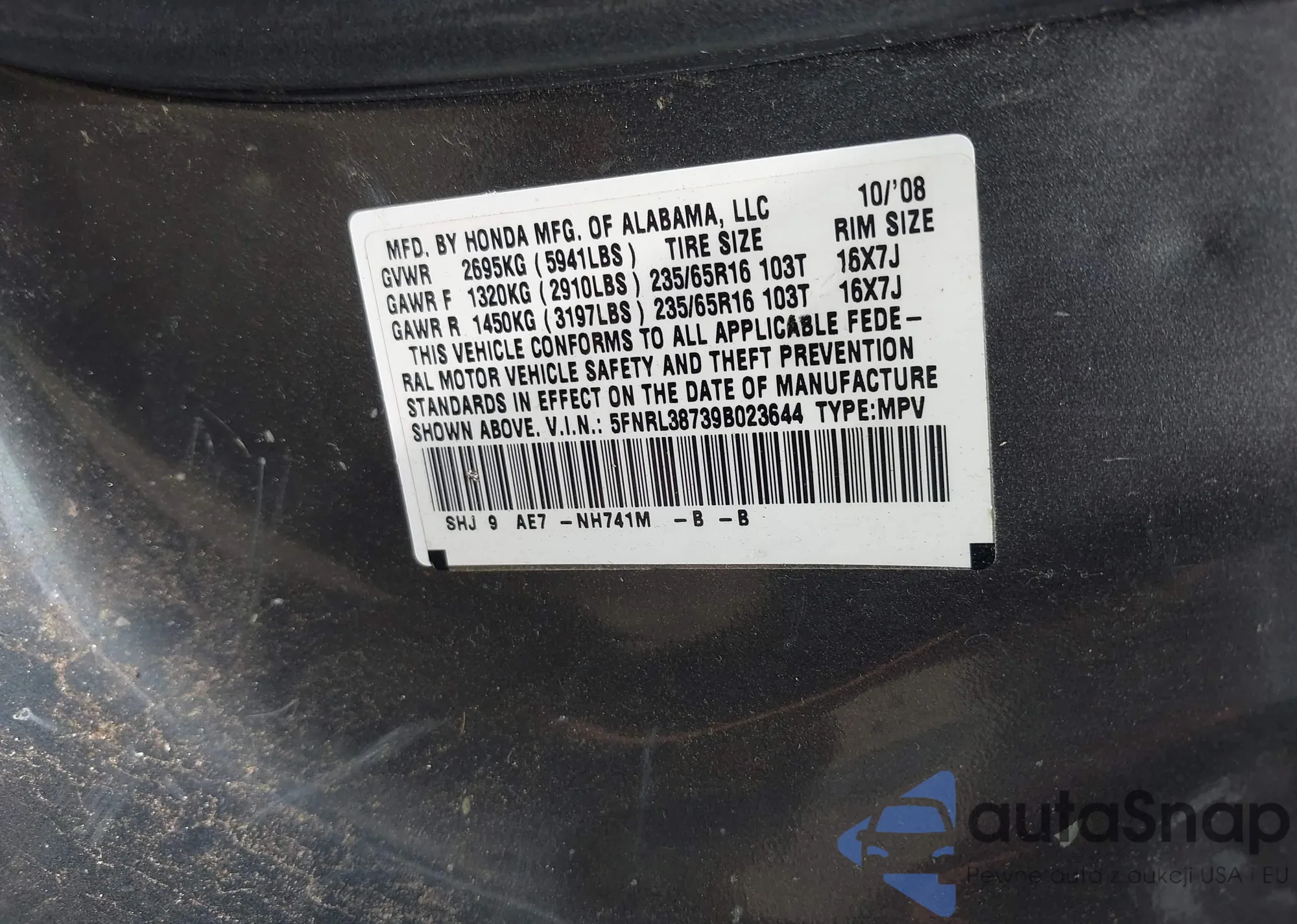 VIN: 5FNRL38739B023644