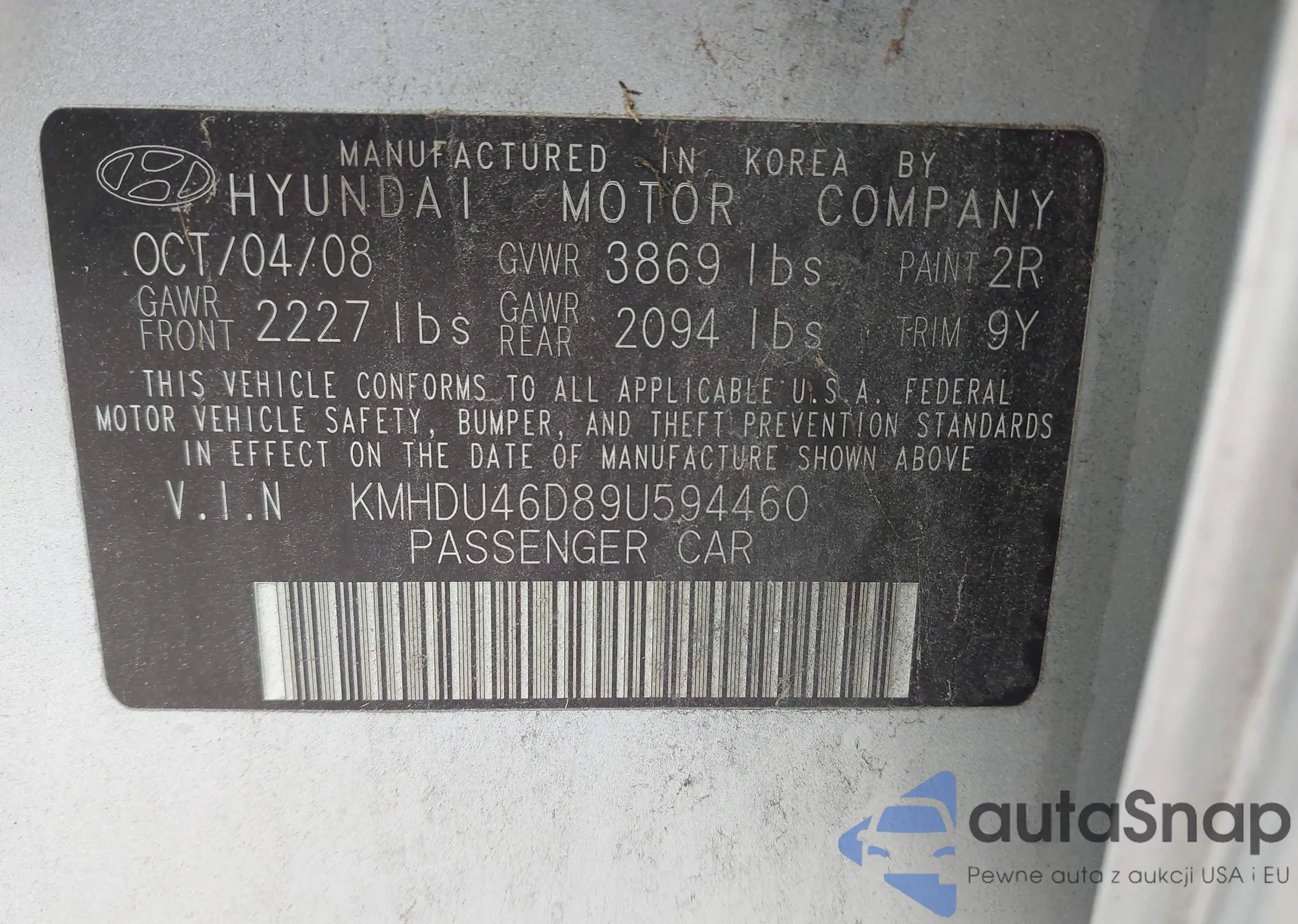 VIN: KMHDU46D89U594460