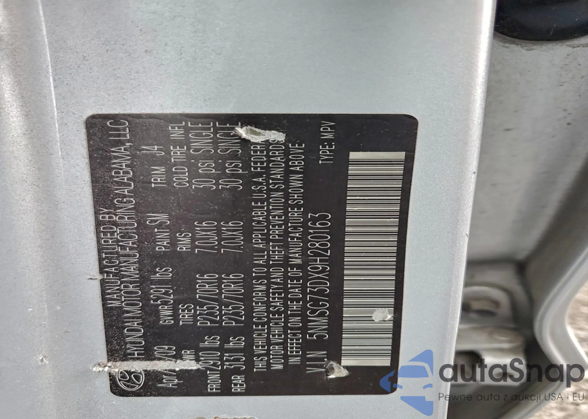 VIN: 5NMSG73DX9H280163