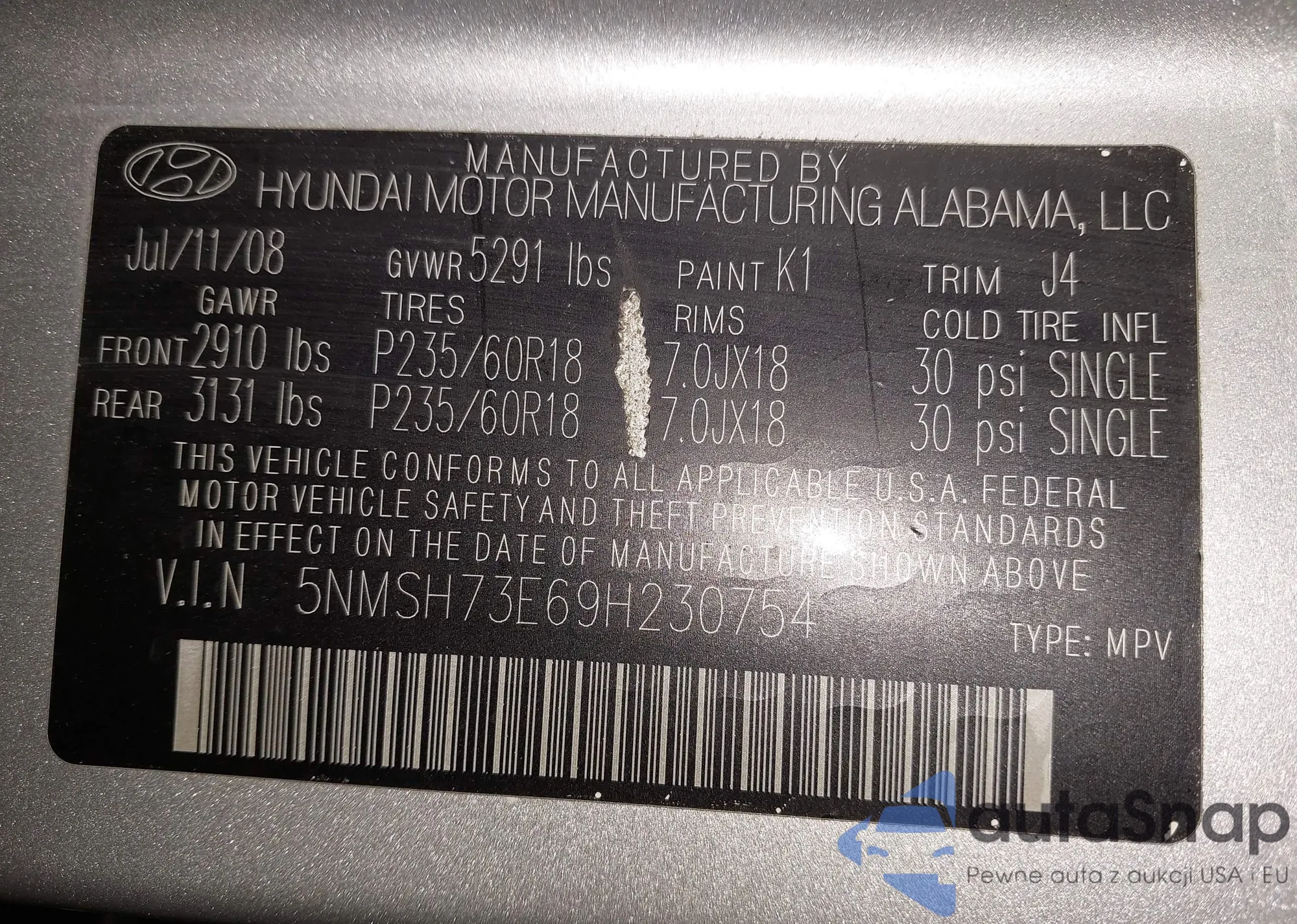VIN: 5NMSH73E69H230754