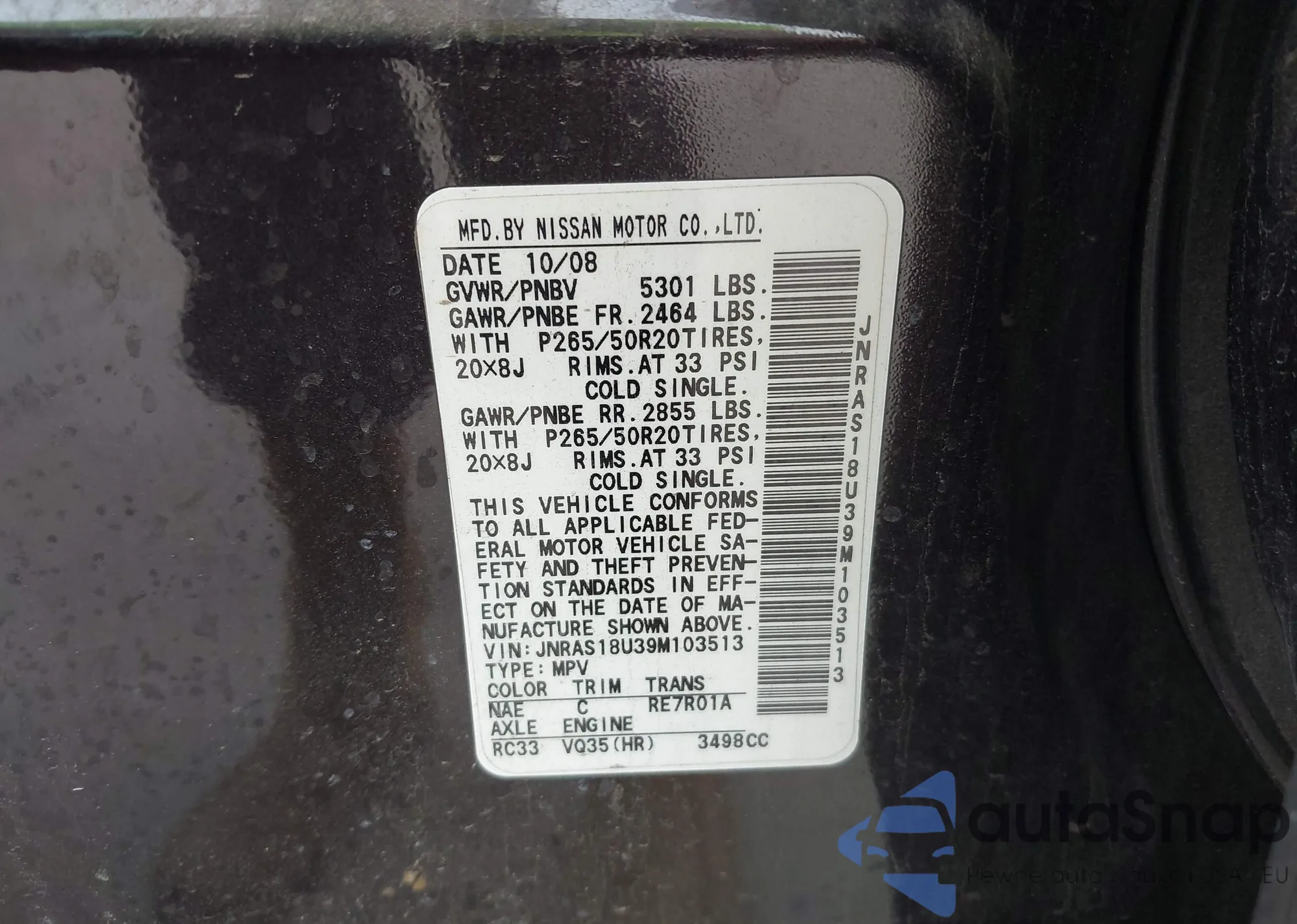 VIN: JNRAS18U39M103513