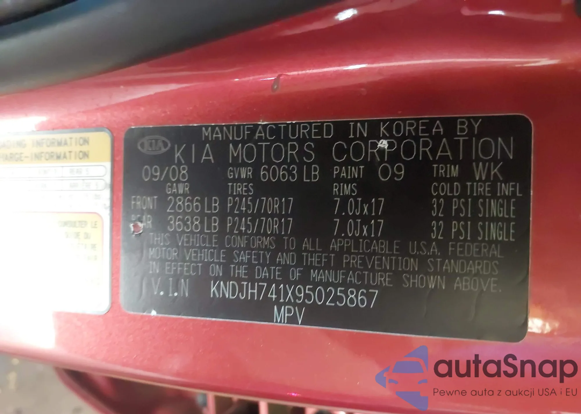 Samochód Kia Mohave (Borrego) 2009 (VIN KNDJH741X95025867) nie był wcześniej licytowany. Dokumenty są czyste, przebieg odpowiada lub jest niższy niż średnia rynku. Sprzedaje go firma ubezpieczeniowa – polecamy zakup. Dostawa do portu zajmie ok. 6–8 tygodni.