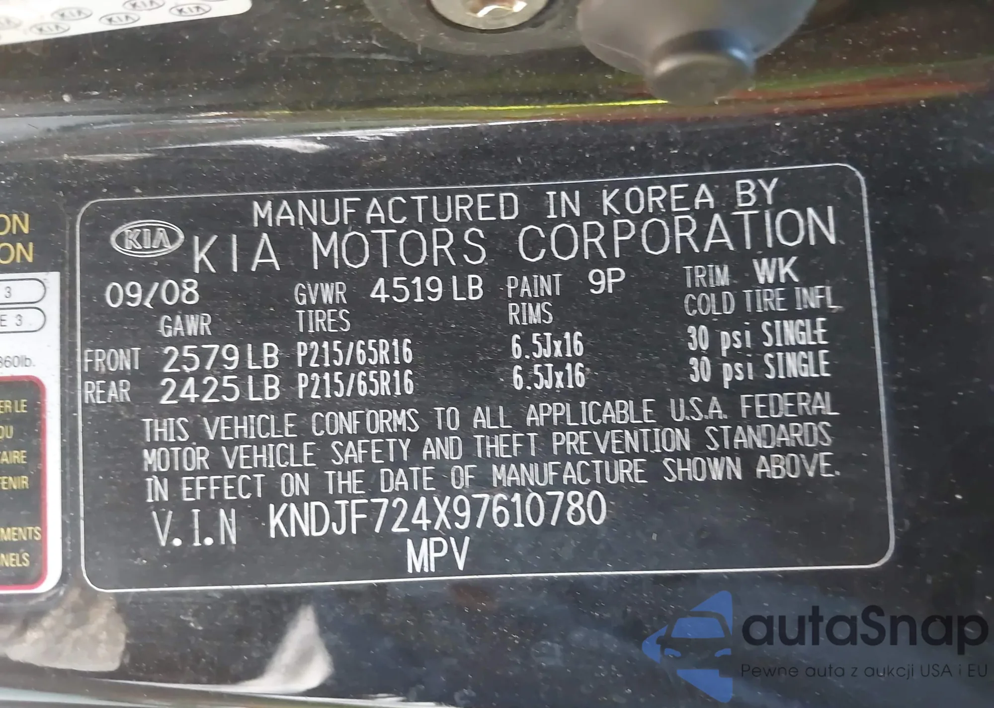 VIN: KNDJF724X97610780