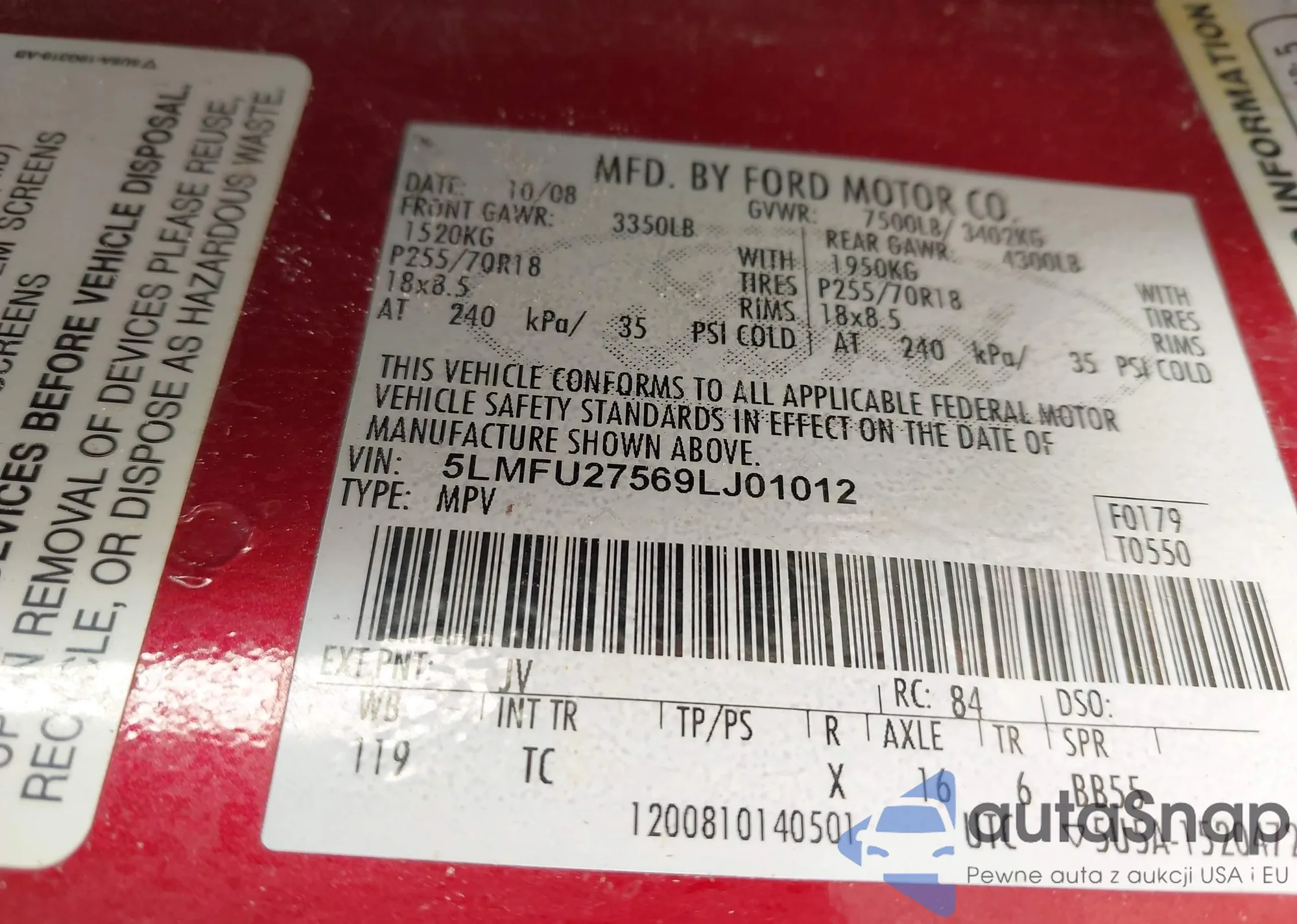 VIN: 5LMFU27569LJ01012