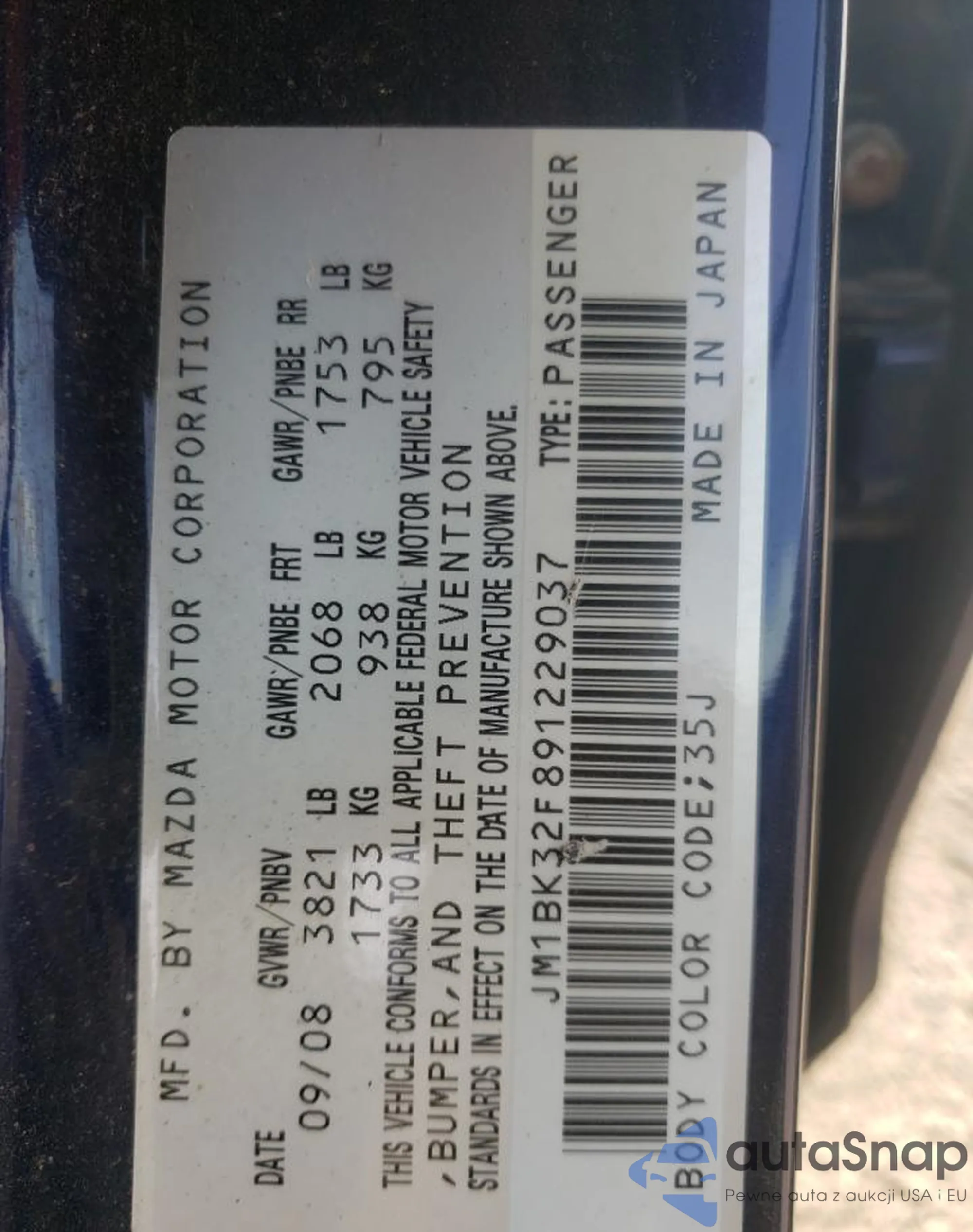 • VIN: JM1BK32F891229037