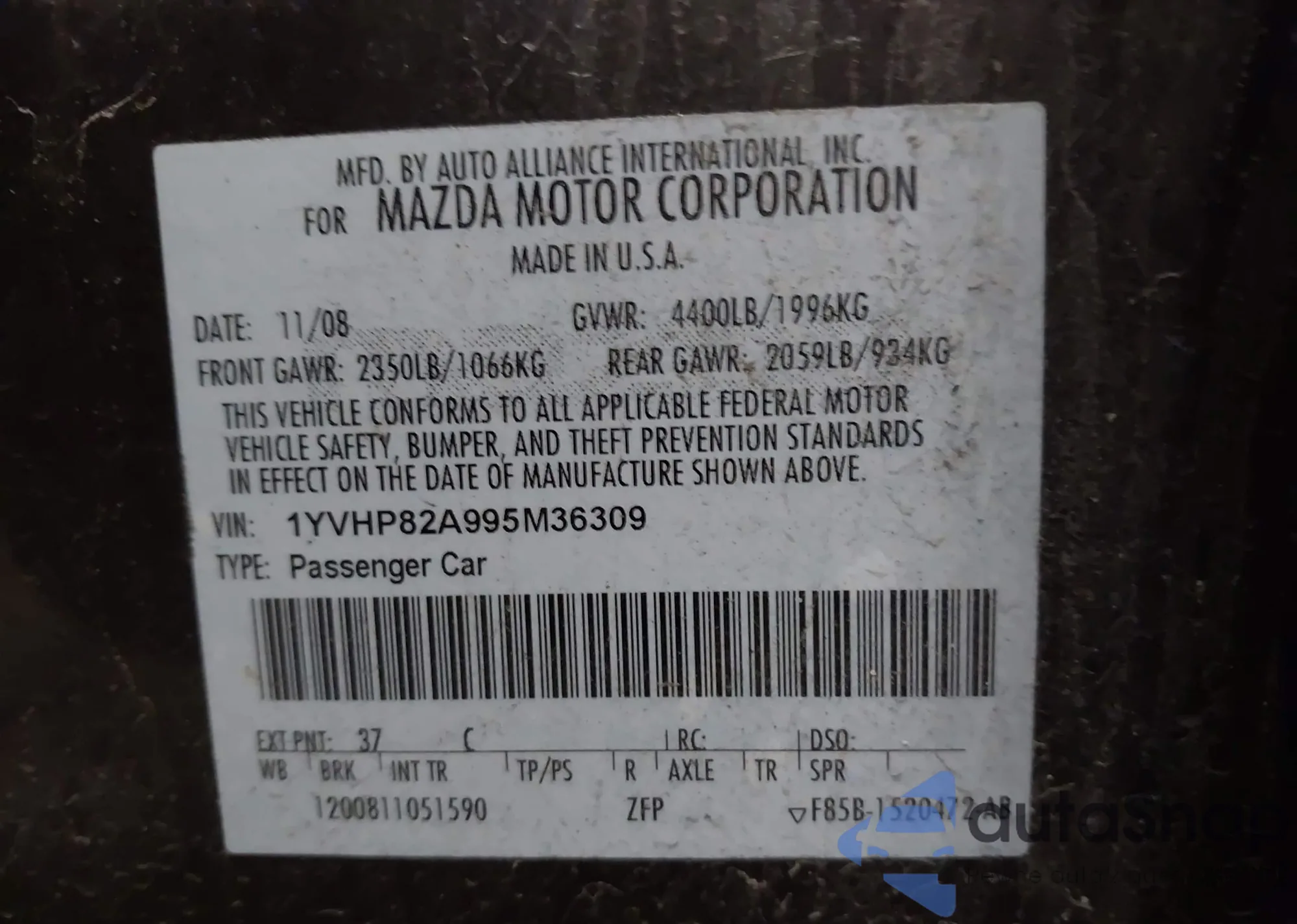 Samochód Mazda 6 2009 (VIN 1YVHP82A995M36309) nie był wcześniej licytowany. Dokumenty są czyste, przebieg odpowiada lub jest niższy niż średnia rynku. Sprzedaje go firma ubezpieczeniowa – polecamy zakup. Dostawa do portu zajmie ok. 6–8 tygodni.