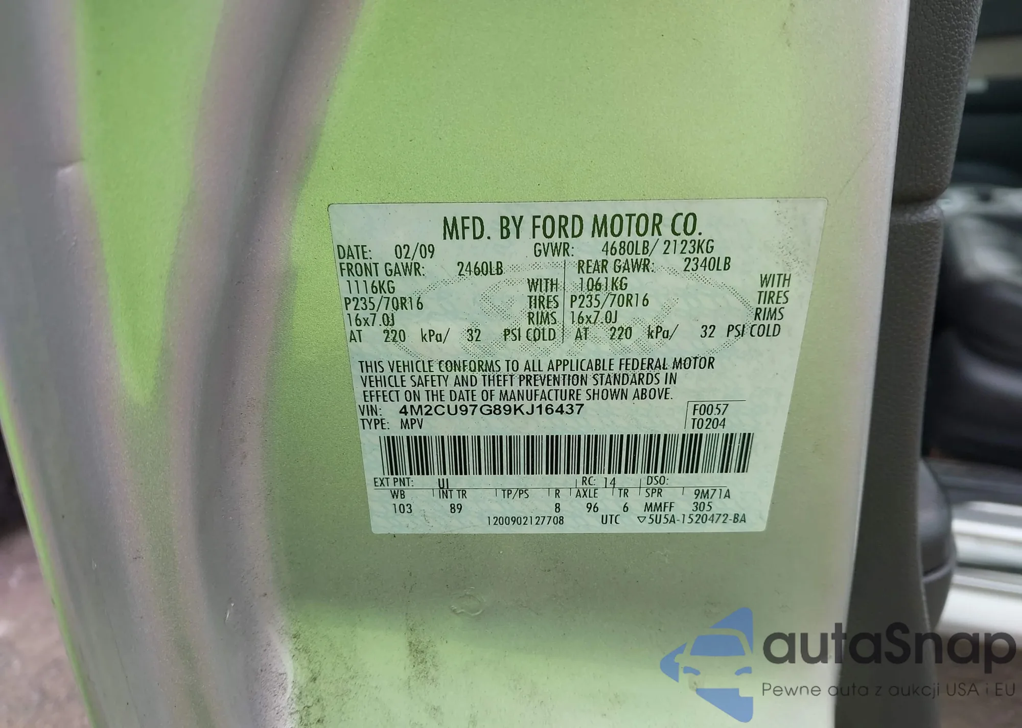 VIN: 4M2CU97G89KJ16437