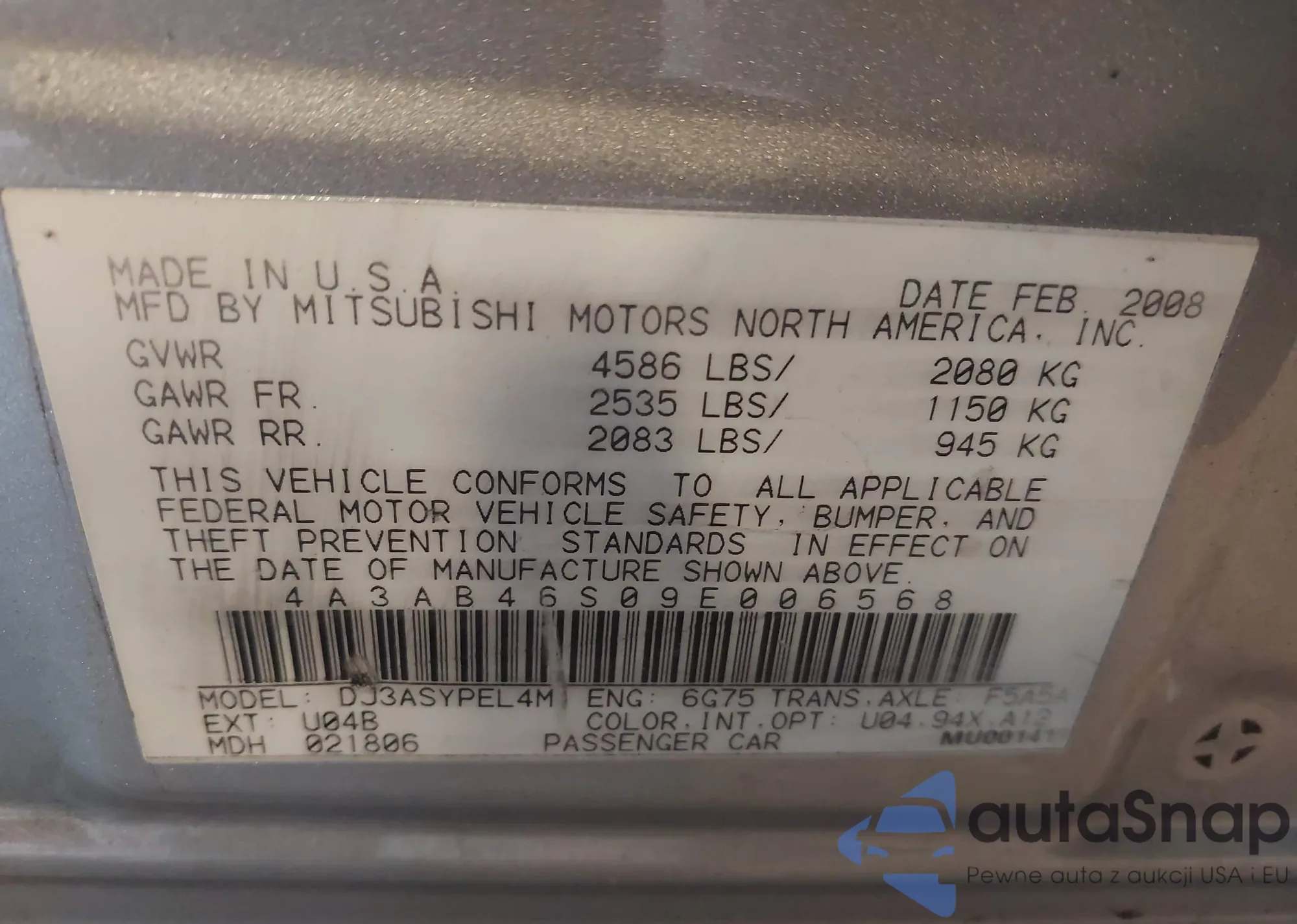 VIN: 4A3AB46S09E006568