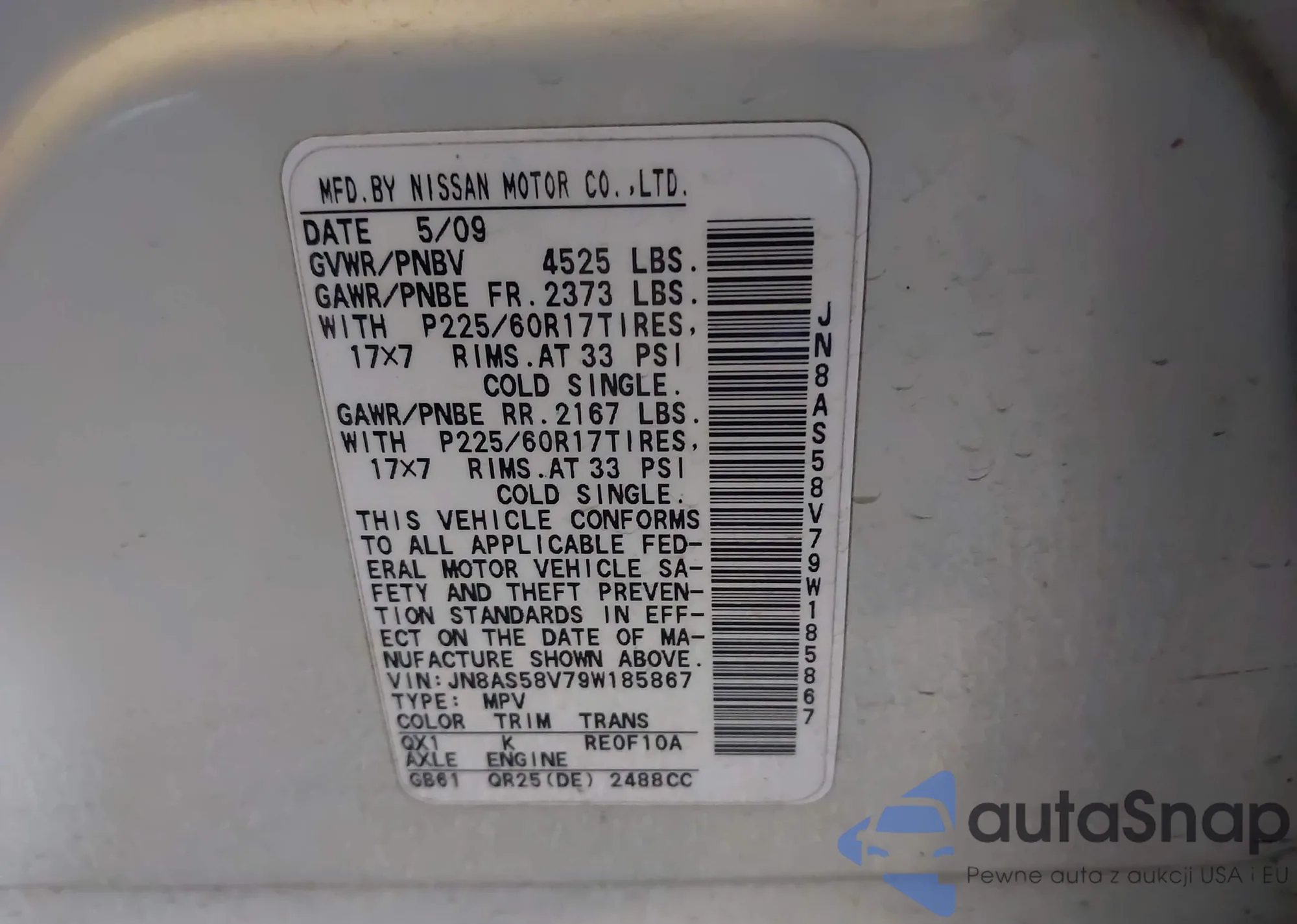 VIN: JN8AS58V79W185867
