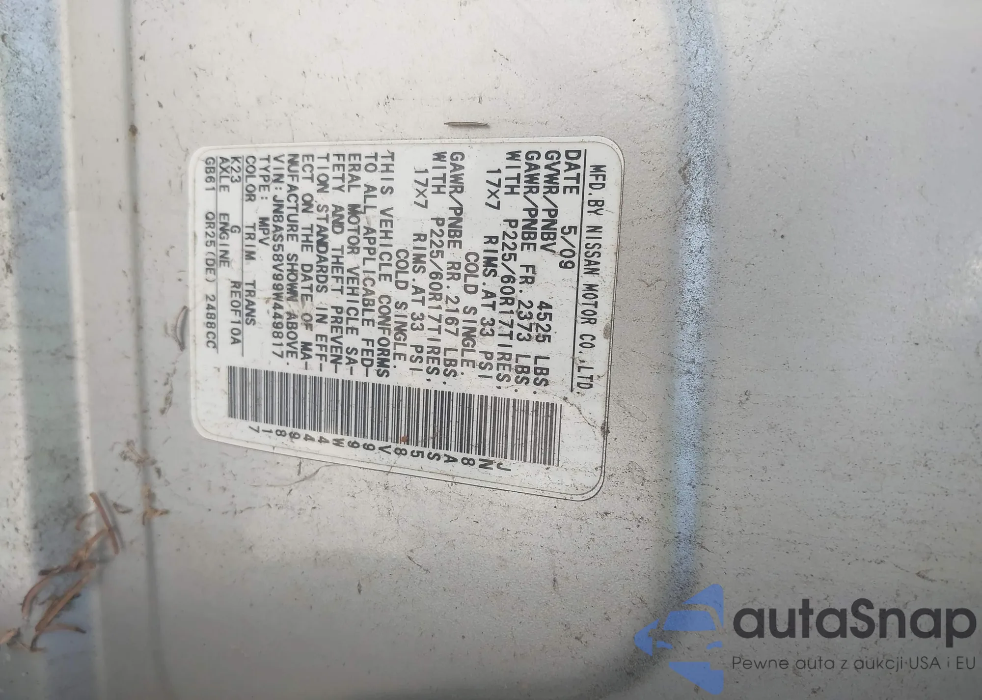 VIN: JN8AS58V99W449817